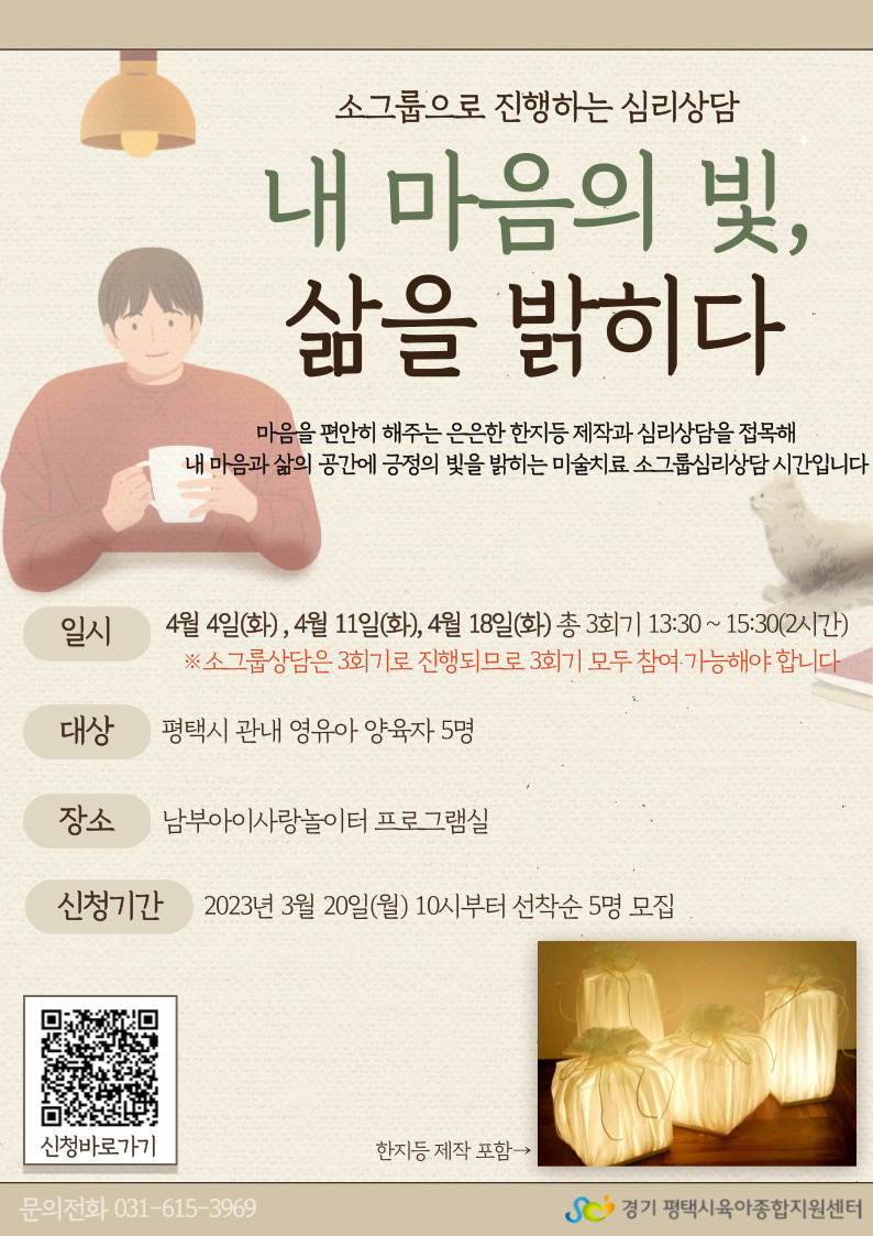 평택시육아종합지원센터에서는 양육자를 대상으로 소그룹심리상담을 실시하고자 합니다.