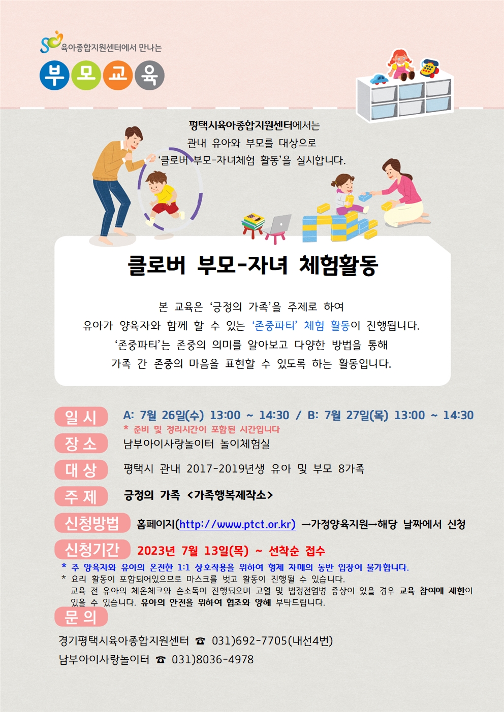 ☎문의: 평택시육아종합지원센터 부모교육 담당자(031-692-7705 내선4번)