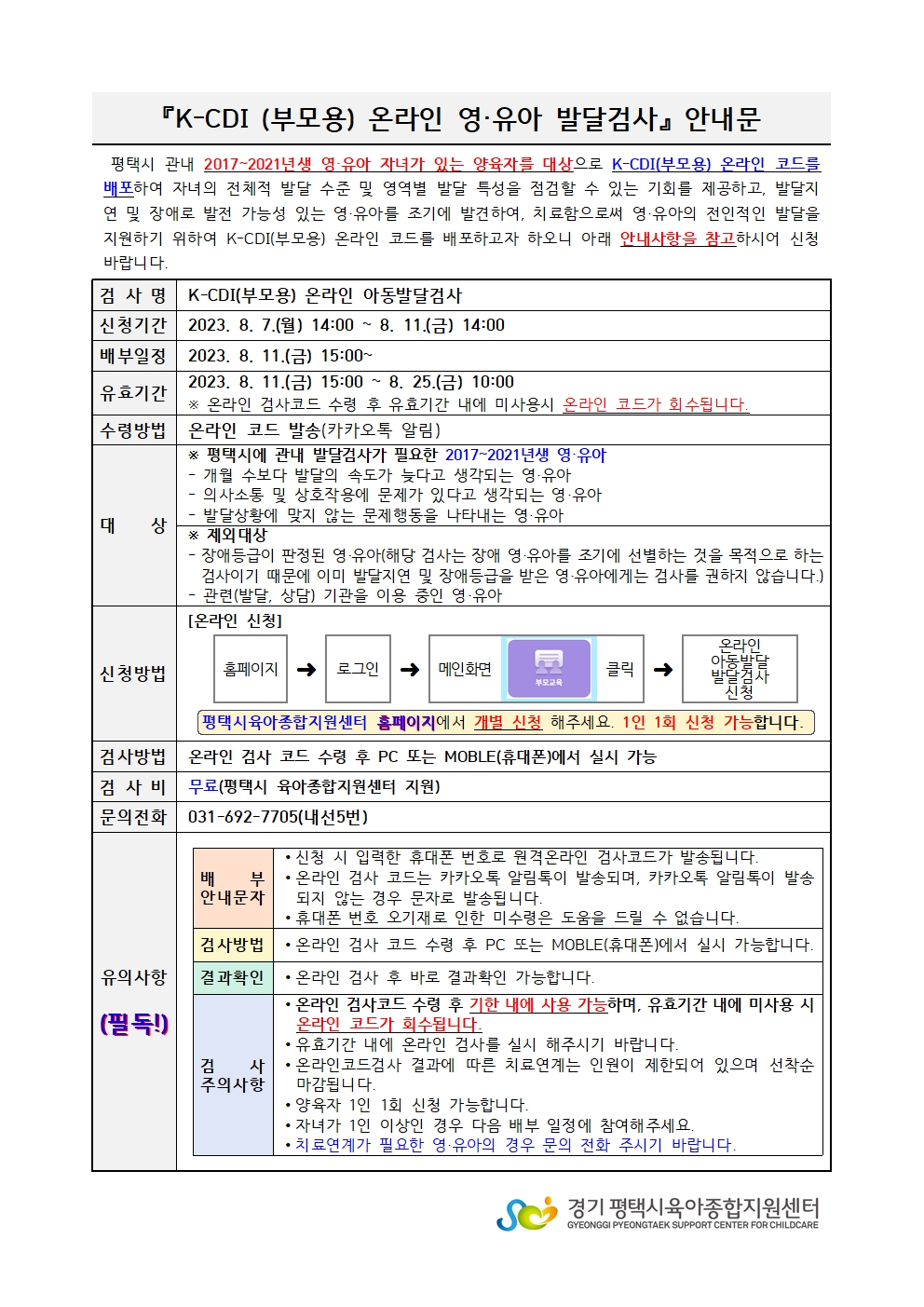 | 교육명 | 온라인 영유아 발달검사 K-CDI(부모용)검사 코드 발송 | 교육형태 | |