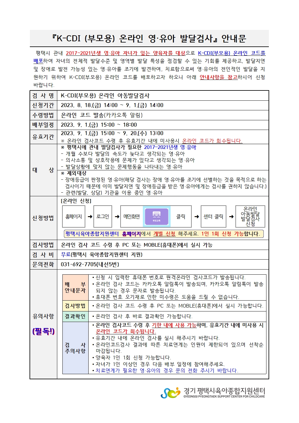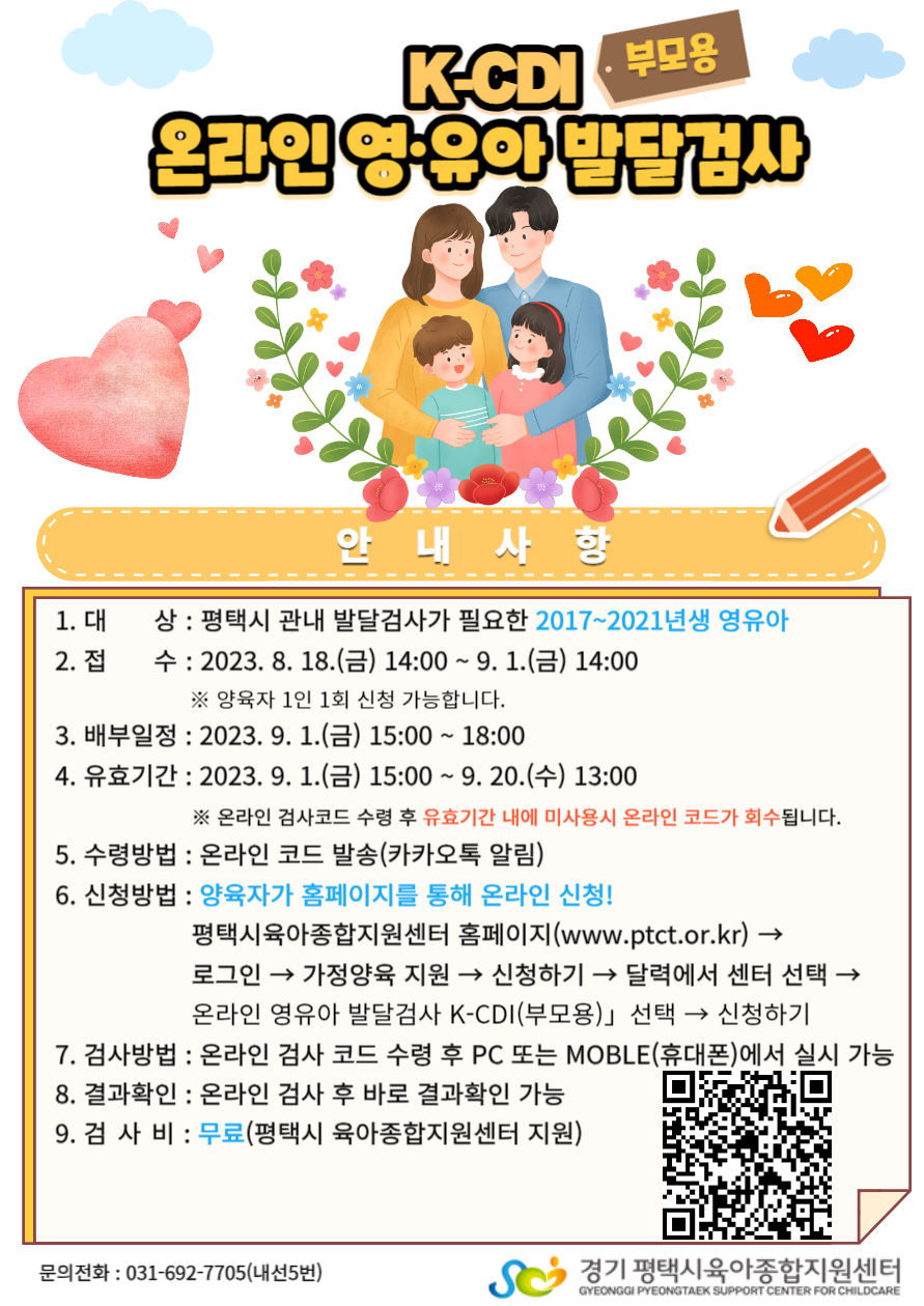 | 교육명 | 9.1.(금) 온라인 영유아 발달검사 K-CDI(부모용)검사 코드 발송 | 교육형태 | 온라인 검사 |