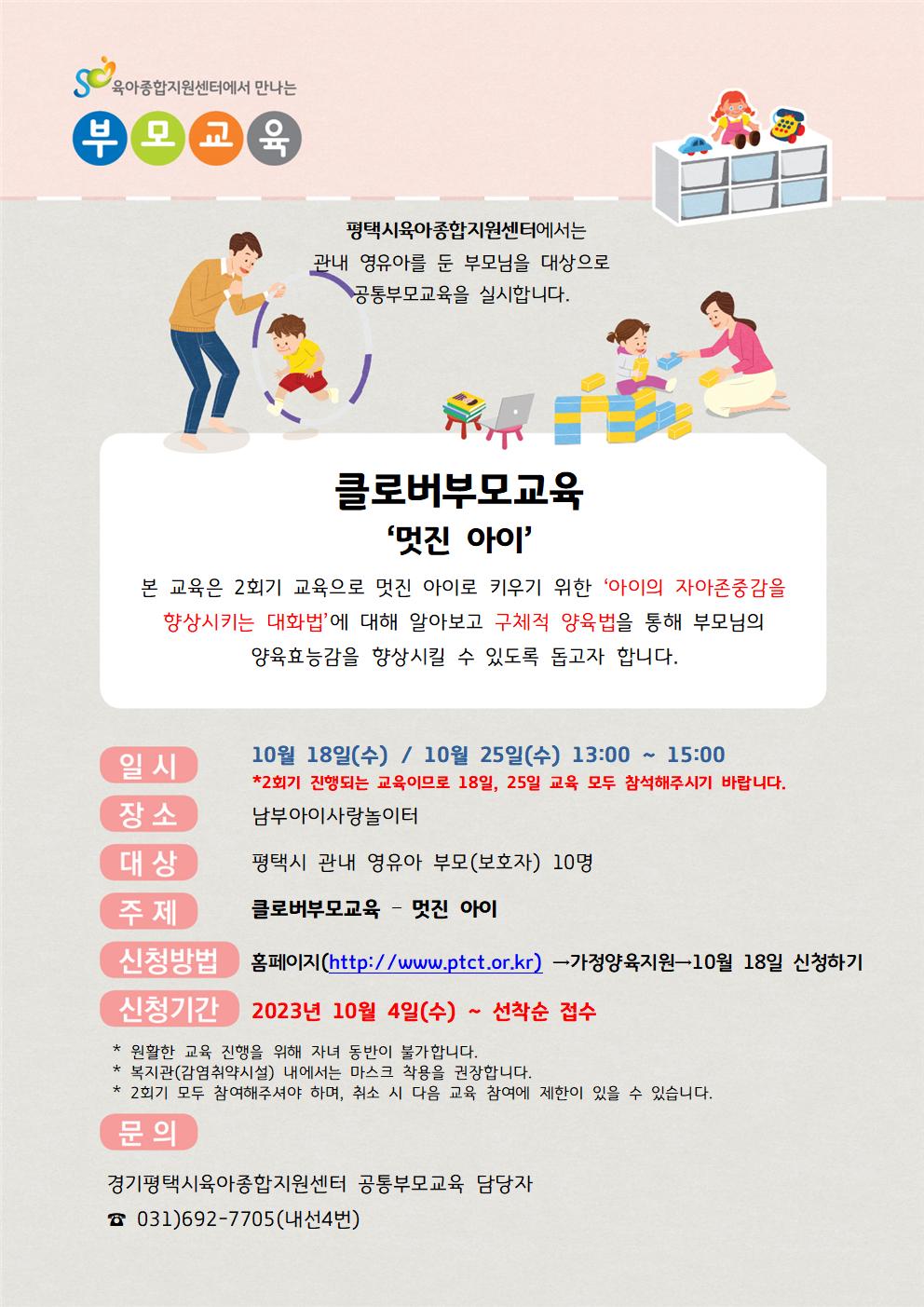 ☎문의: 평택시육아종합지원센터 공통부모교육 담당자(031-692-7705 내선4번) |
