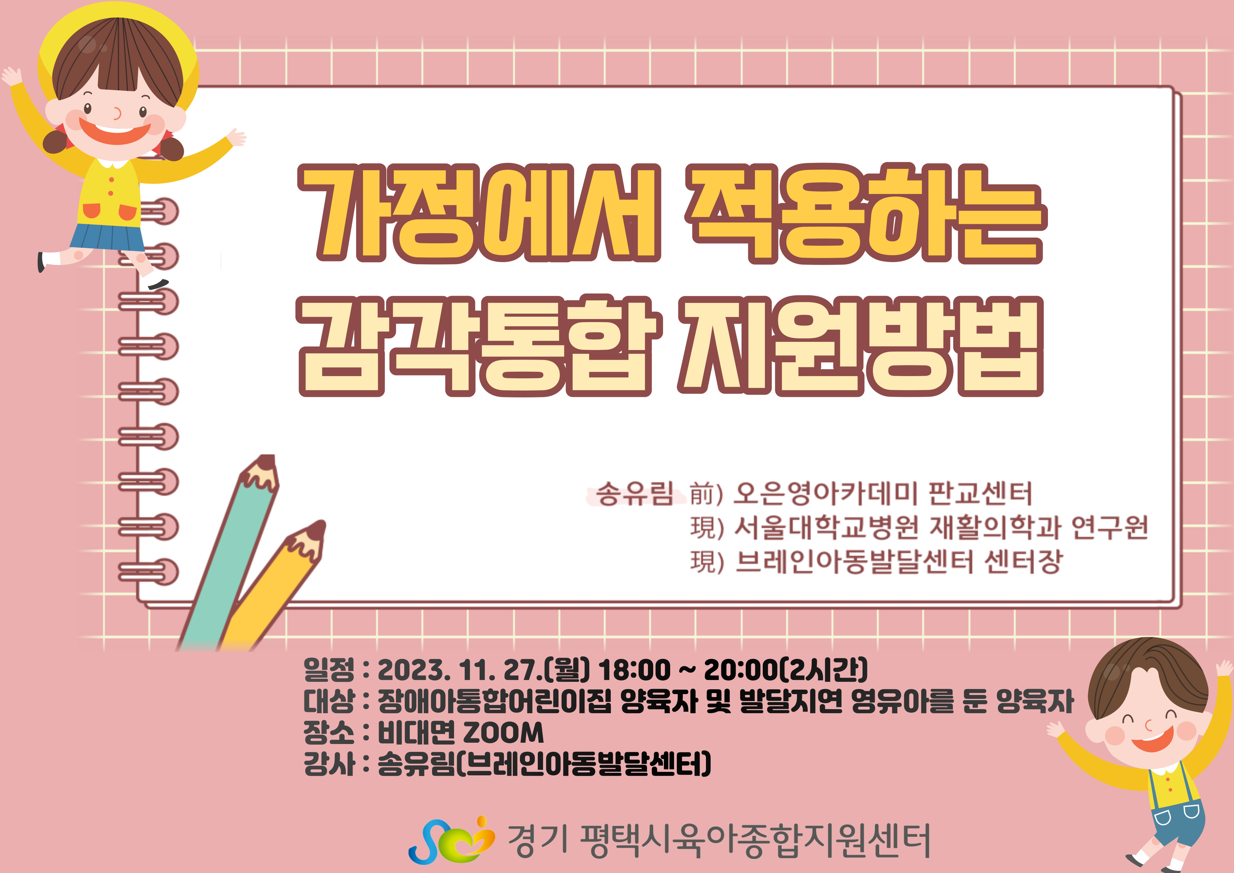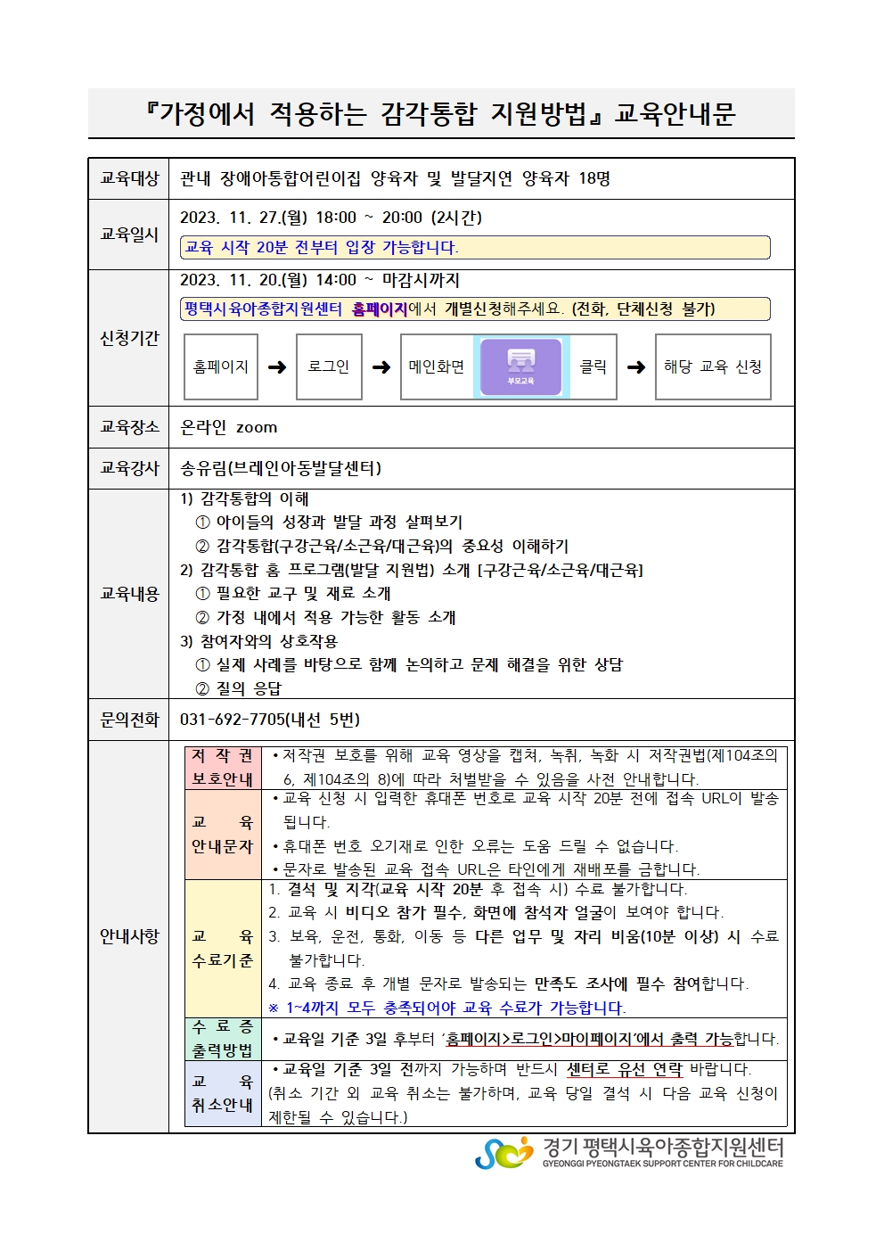 | 문의전화 | 031-692-7705(내선 5번) | 강 사 명 | 송유림(브레인아동발달센터) |