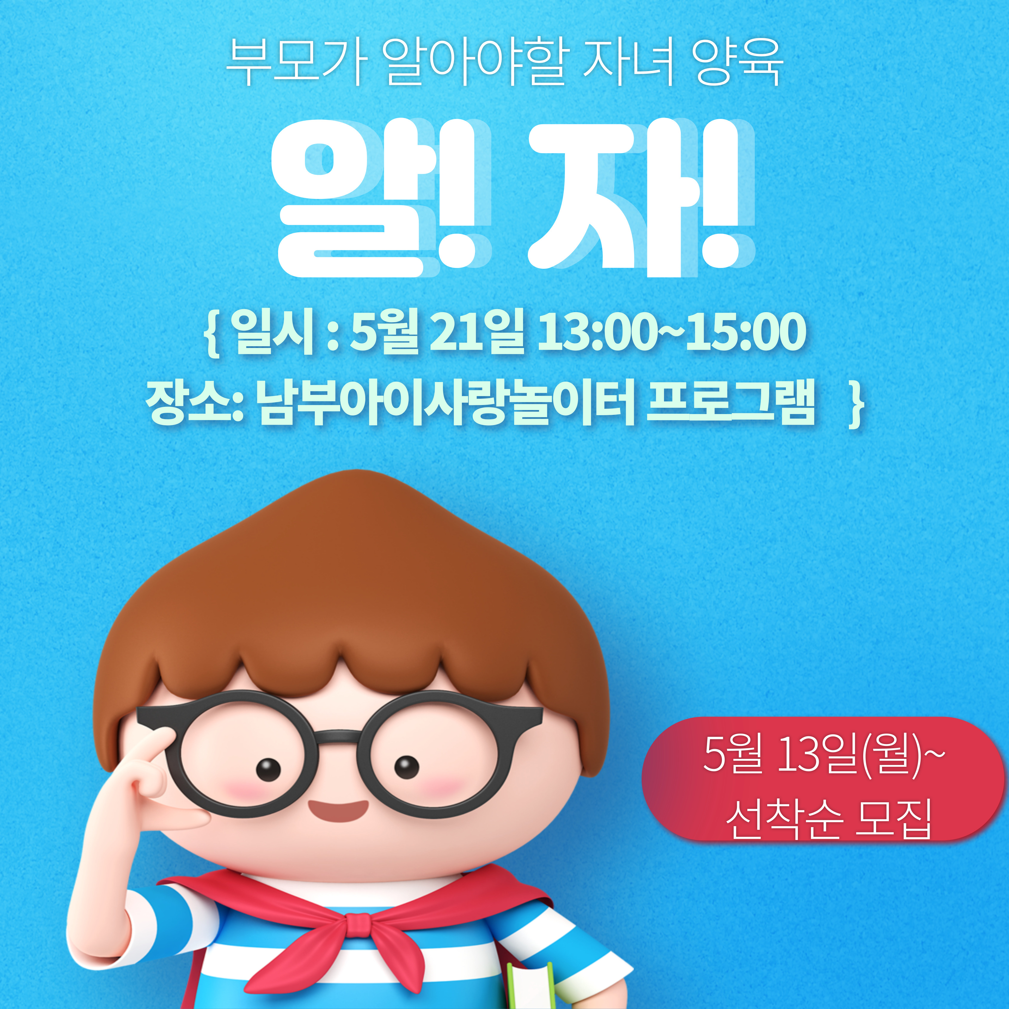 | 교육대상 | 부모 | 교육장소 | 남부아이사랑놀이터 프로그램실 |