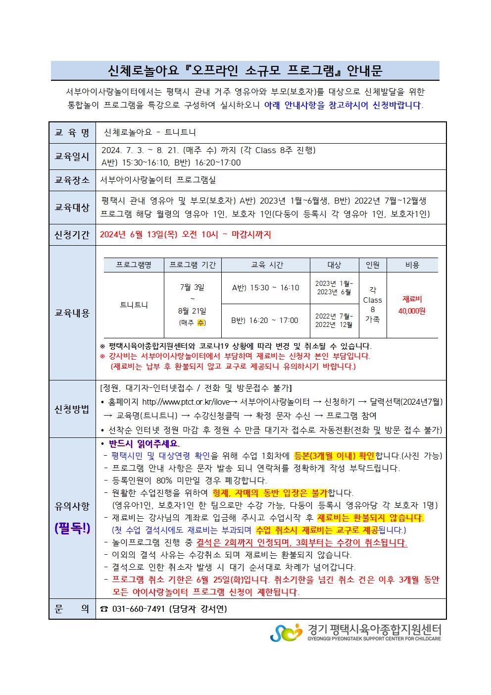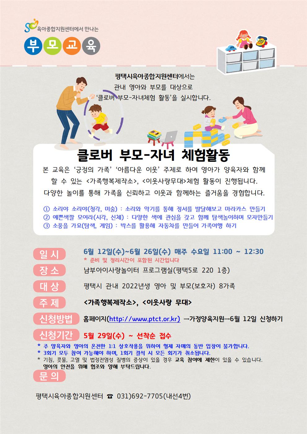 ☎문의: 평택시육아종합지원센터 부모교육 담당자(031-692-7705 내선4번)