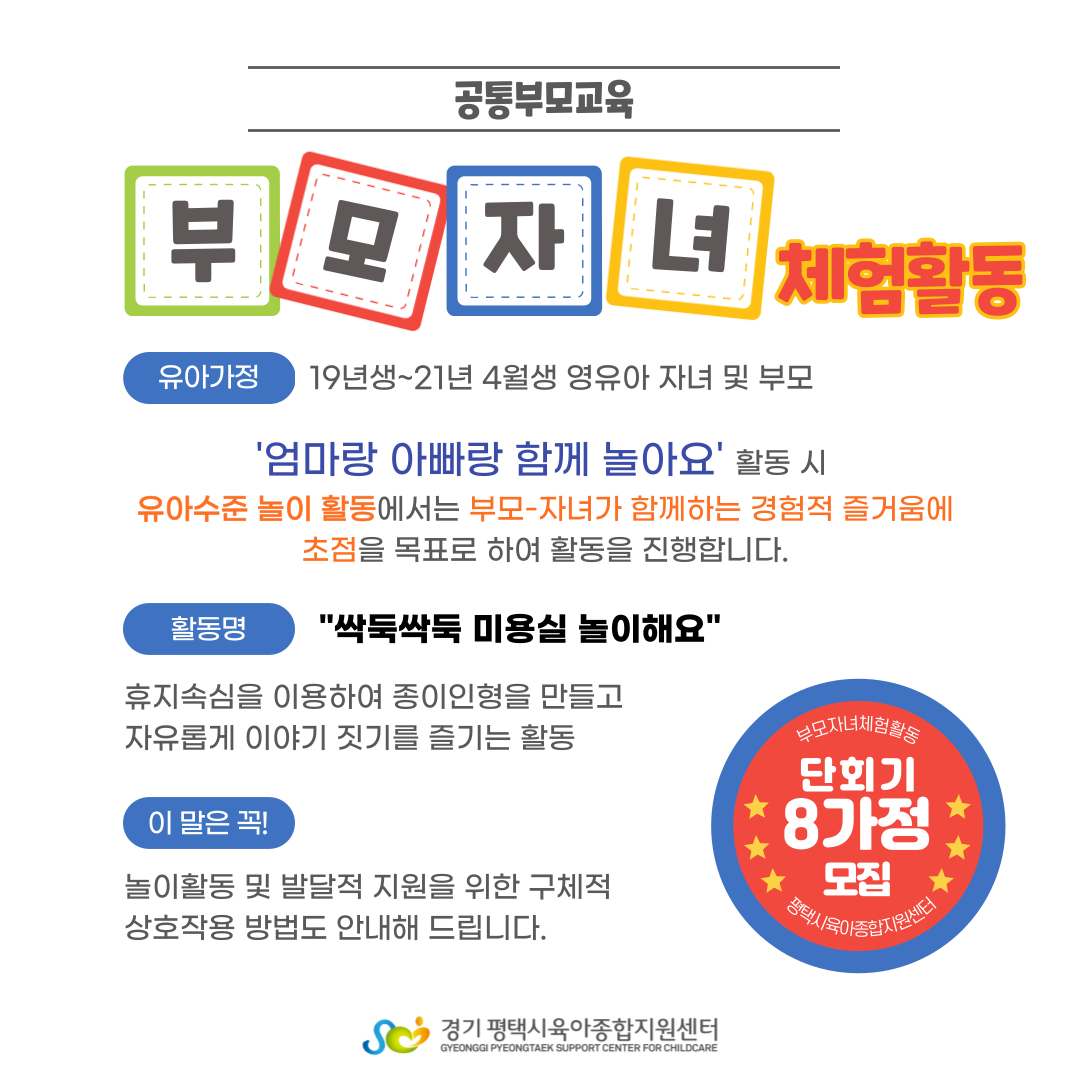 | 교육명 | 부모-자녀체험활동(유아)-2 | 교육형태 | |