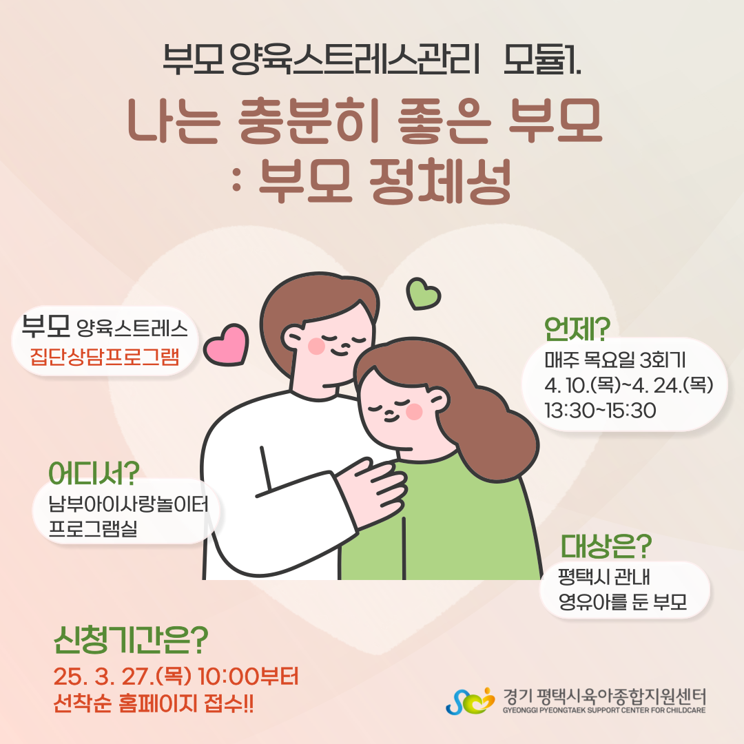 | 교육명 | 양육스트레스관리 부모교육[모듈1. 나는 충분히 좋은 부모:부모 정체성] | 교육형태 | |