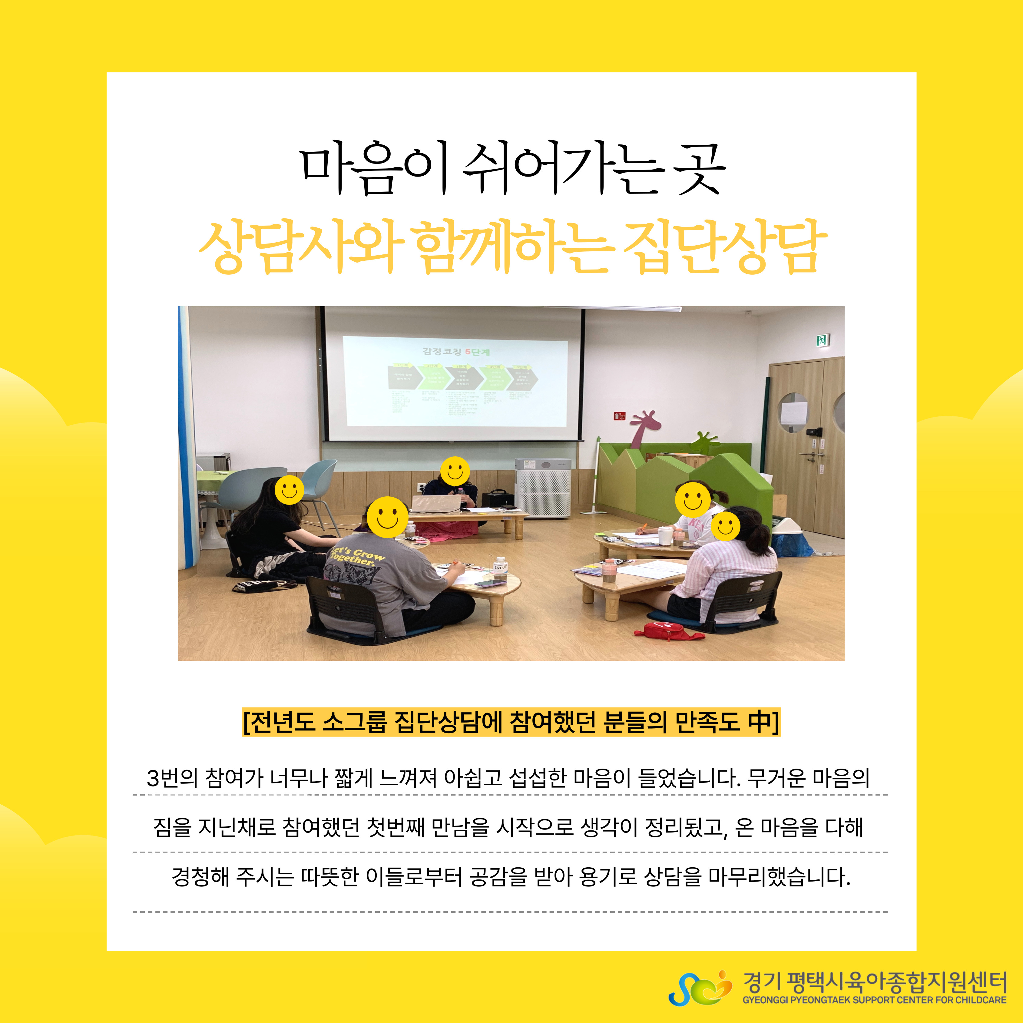 평택시육아종합지원센터에서는 육아문제와 양육스트레스로 고민하는 양육자를 대상으로