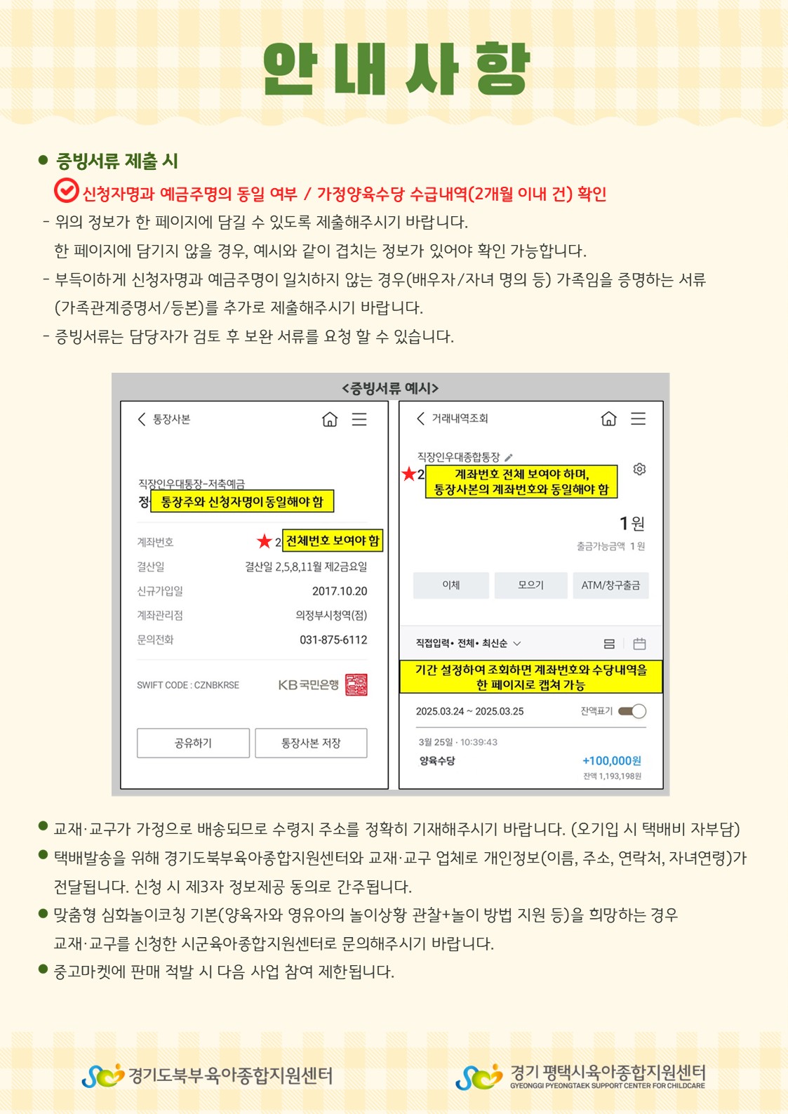 ※ 경기도북부육아종합지원센터에서 직접 가정으로 교재 교구가 발송이 되므로 주소 잘못 입력 시 추가 배송이 어렵습니다.