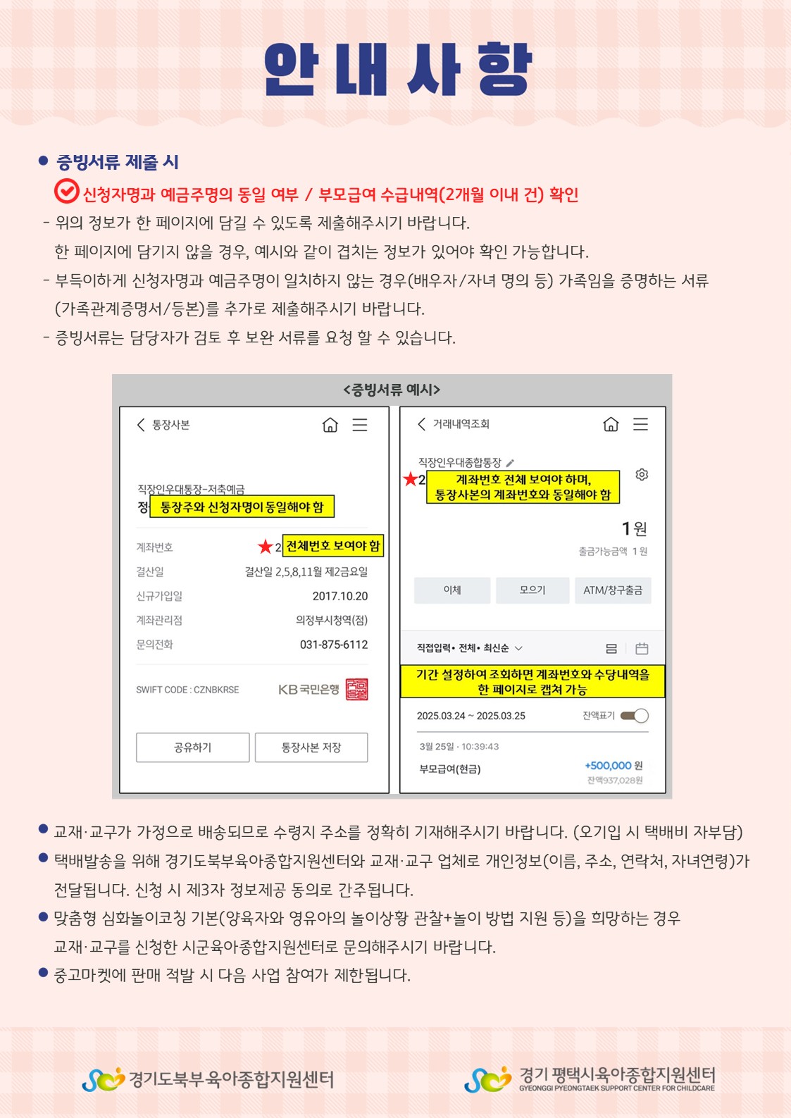 1. 부모급여 수급 거래 내역서(25년 3월 or 4월 거래내역)