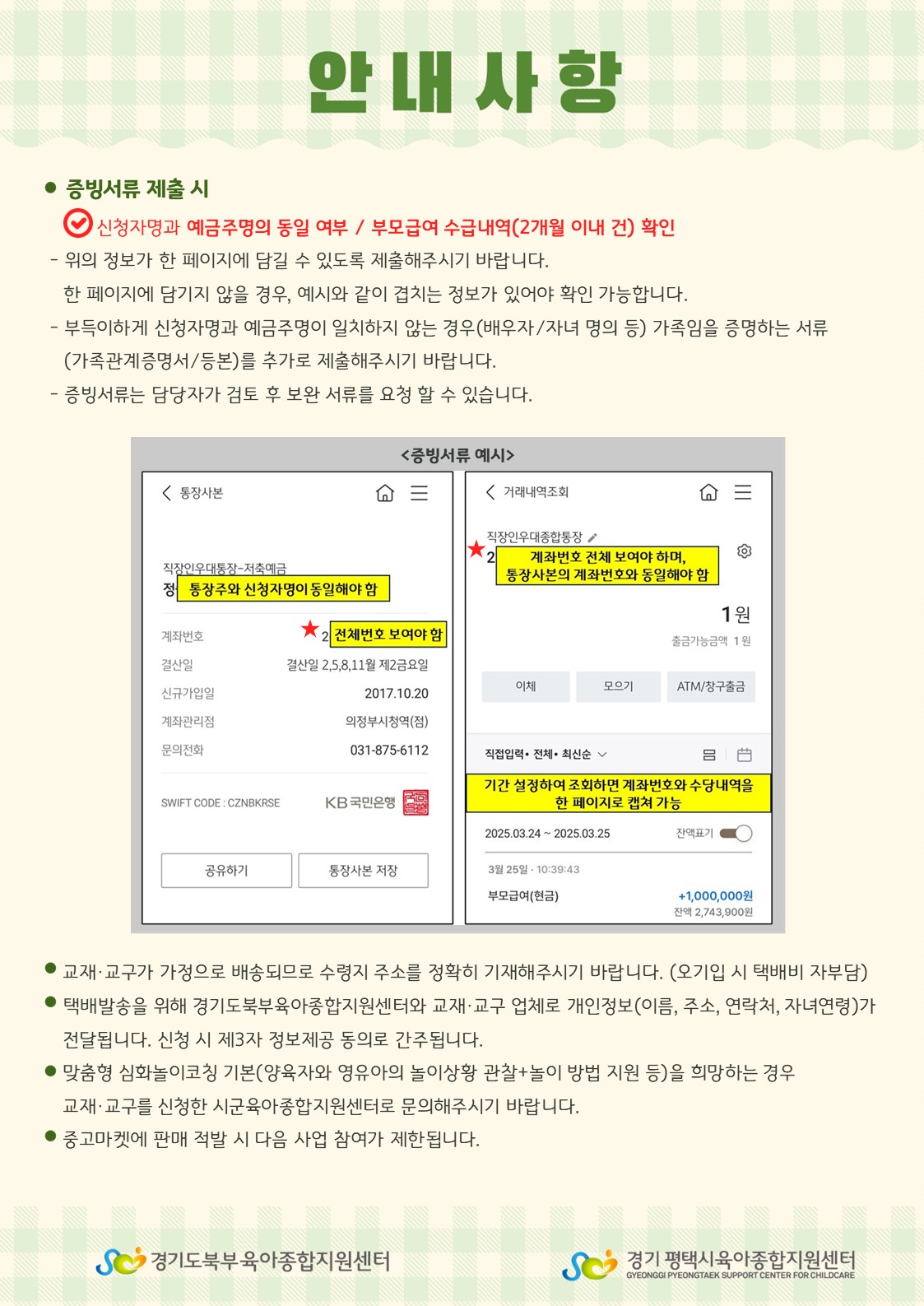 1. 부모급여 수급 거래 내역서(25년 3월 or 4월 거래내역)