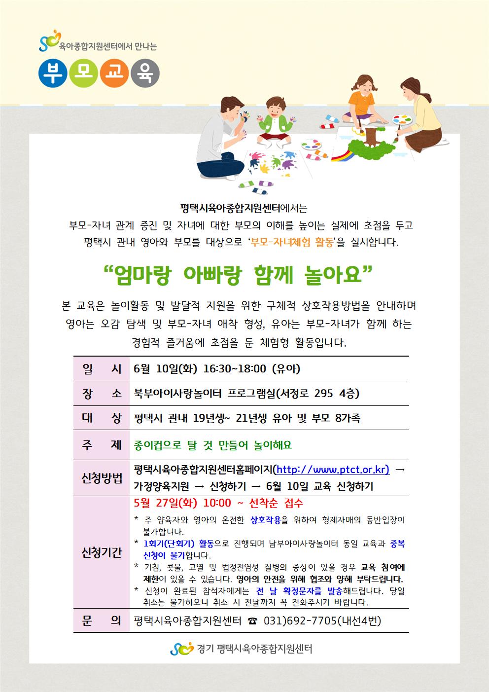 | 교육대상 | 부모 | 교육장소 | 북부아이사랑놀이터 프로그램실 |