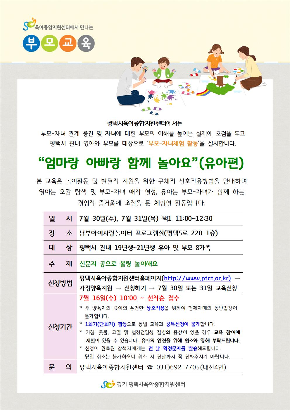 | 교육대상 | 부모 | 교육장소 | 남부아이사랑놀이터 프로그램실 |