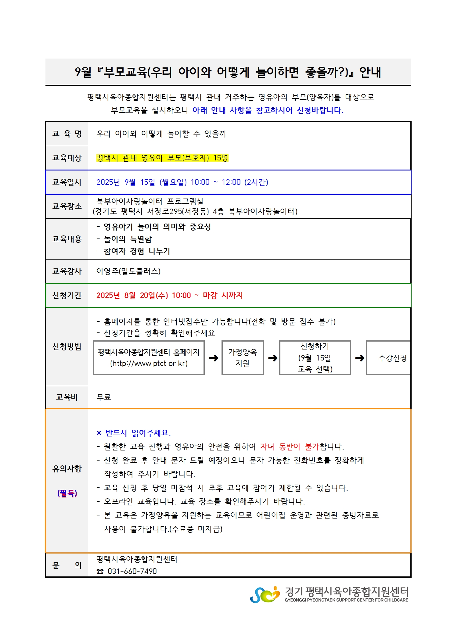 * 원활한 교육 진행과 영유아의 안전을 위해 자녀 동반이 불가합니다.