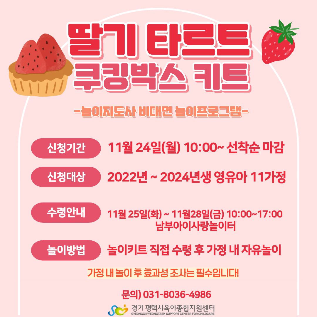 [놀이지도사 비대면 놀이프로그램] 놀이랜드:집에서 놀아요! -11월- 딸기 타르트 쿠킹박스 ※안내문 미숙지로 인한 불이익은 신청자에게 있으니 꼭 읽어주시기 바랍니다.※