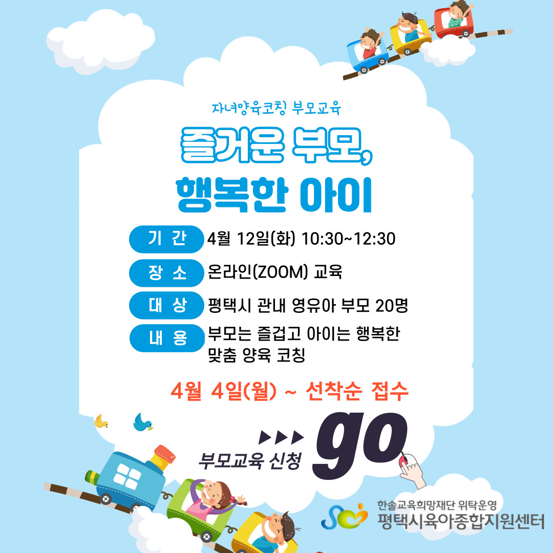 ☎문의: 평택시육아종합지원센터 부모교육 담당자(031-692-7705 내선4번)