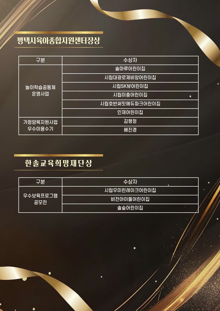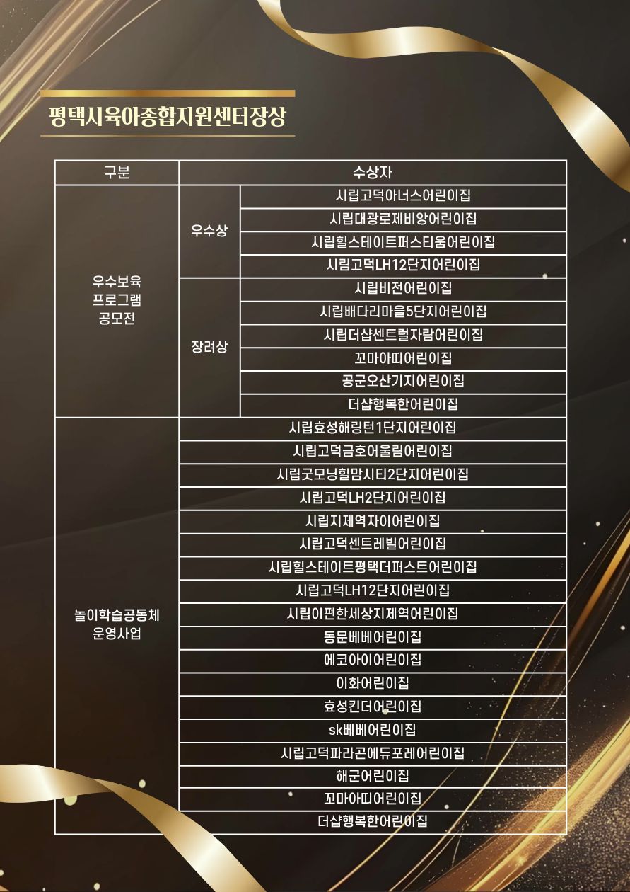 2025년 평택시육아종합지원센터 시상식 수상자 명단