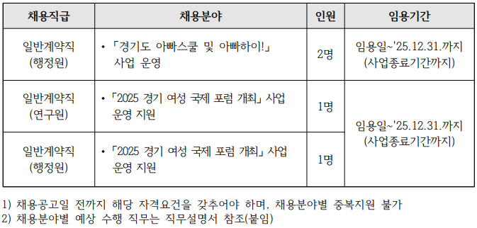 2025년 제 7차, 8차 경기도여성가족재단 직원 채용을 공고합니다.