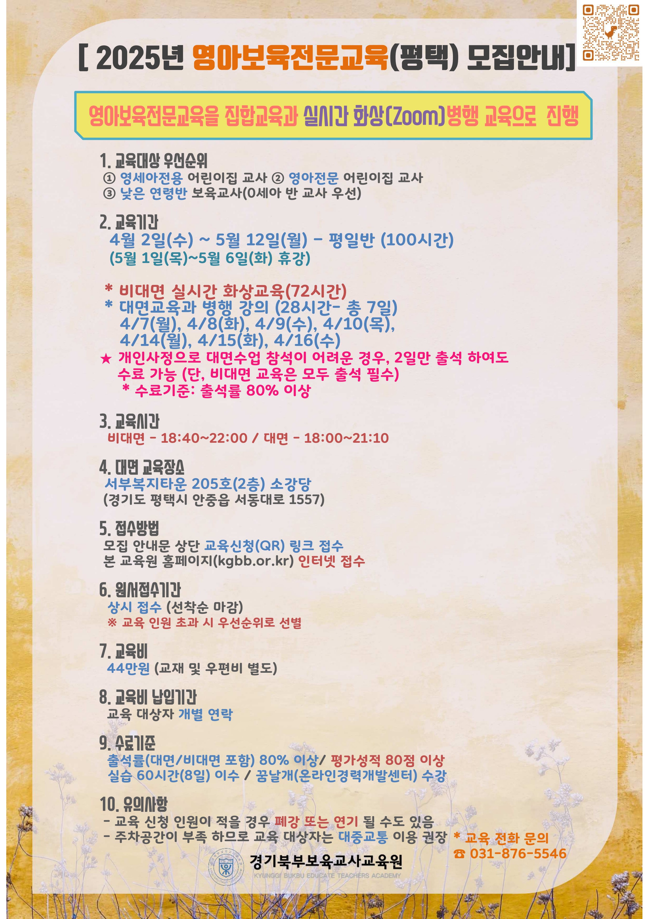 | [경기북부보육교사교육원] 2025년 영아보육전문교육 모집 안내 | |||||