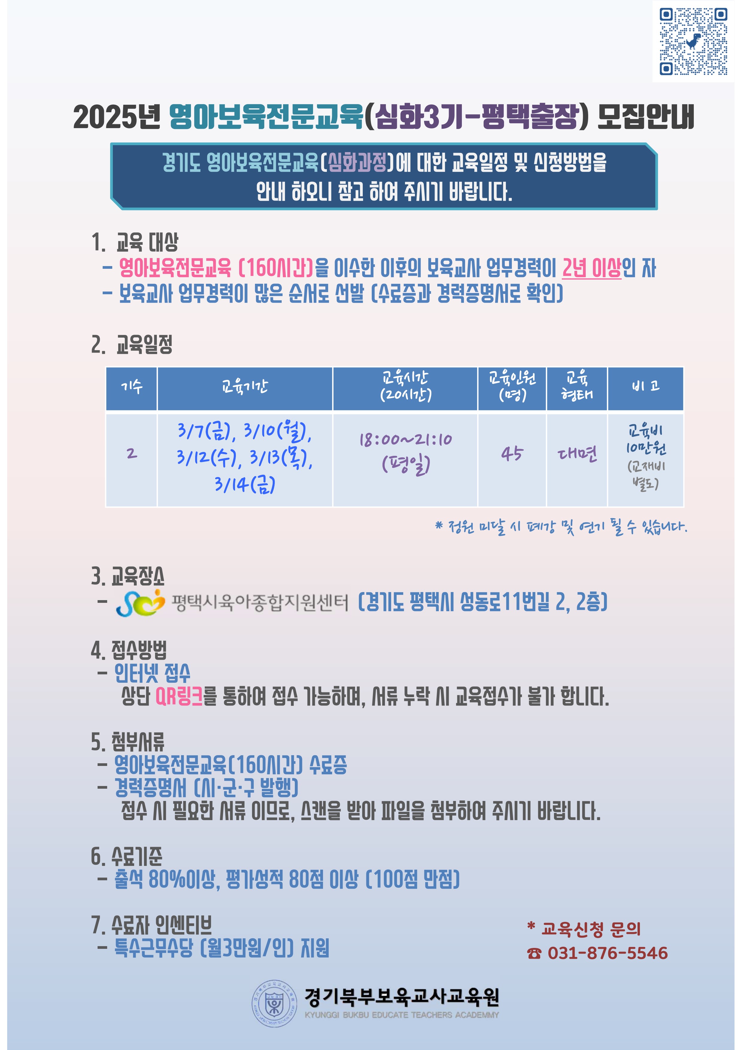 경기북부보육교사교육원에서 2025년도 영아보육전문[심화과정] 3월 교육을 진행합니다.