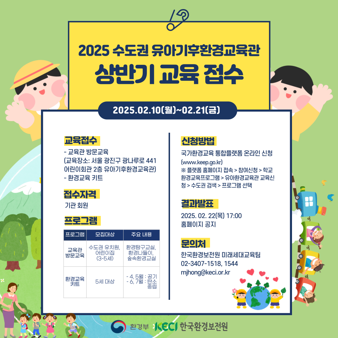 | [한국환경보전원]2025년 상반기 수도권 유아기후환경교육관 교육신청 안내 | |||||