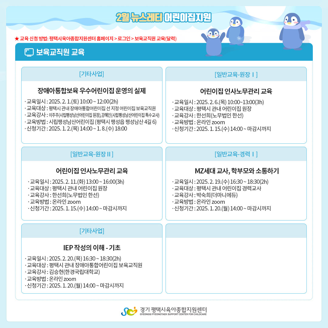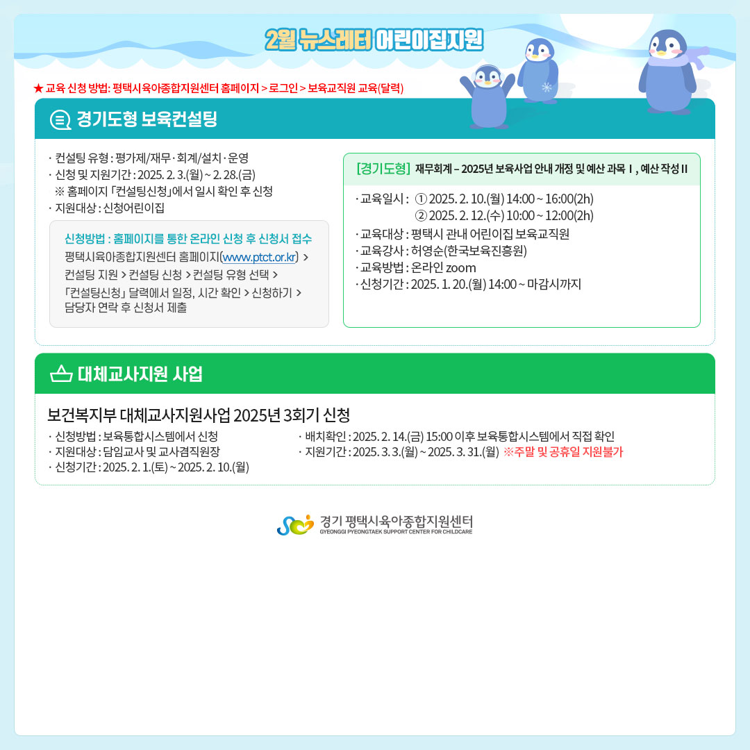 2025년 2월 어린이집지원사업 뉴스레터입니다. 업무에 참고해주시기 바랍니다.