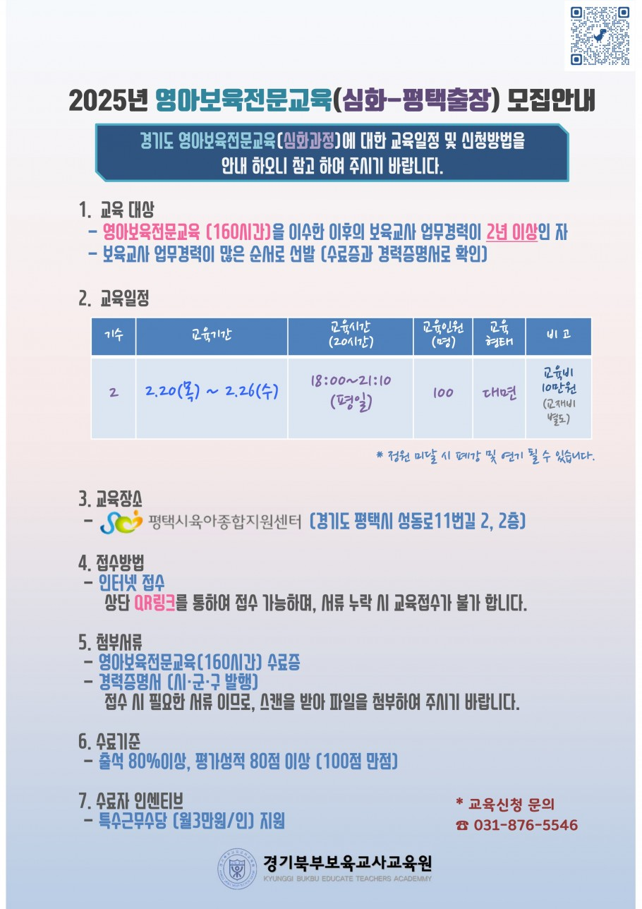 | [경기북부보육교사교육원] 2025년 영아보육전문 (심화과정) 안내 | |||||