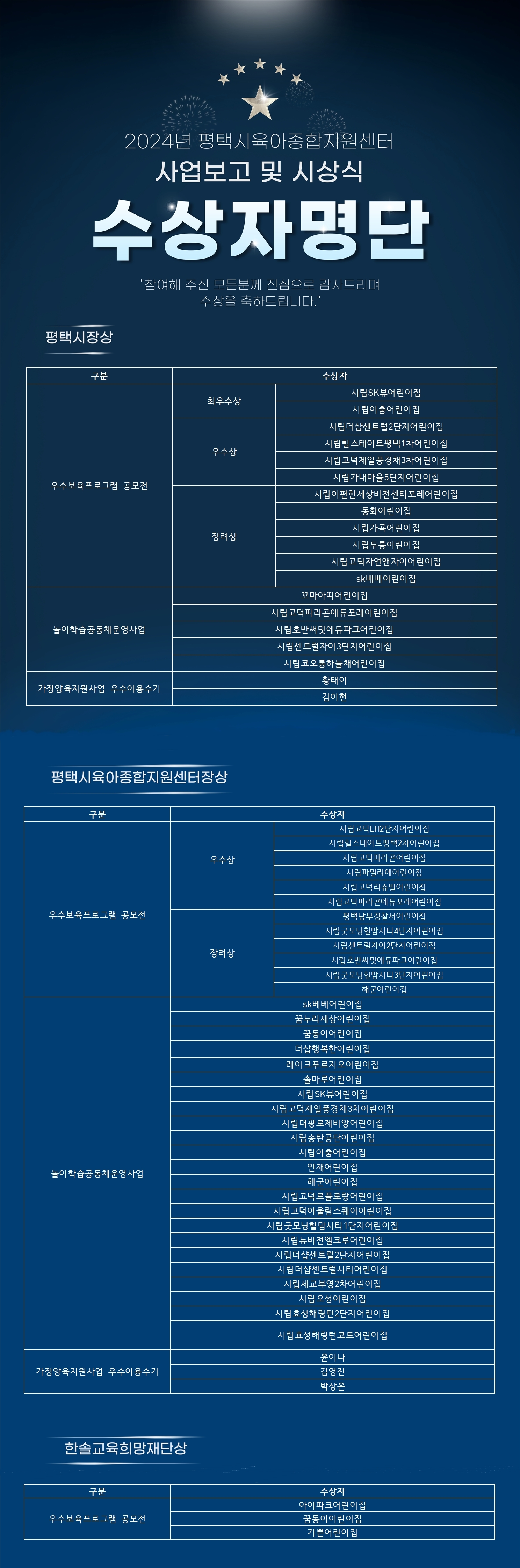 2024년 평택시육아종합지원센터 시상식 수상자 명단