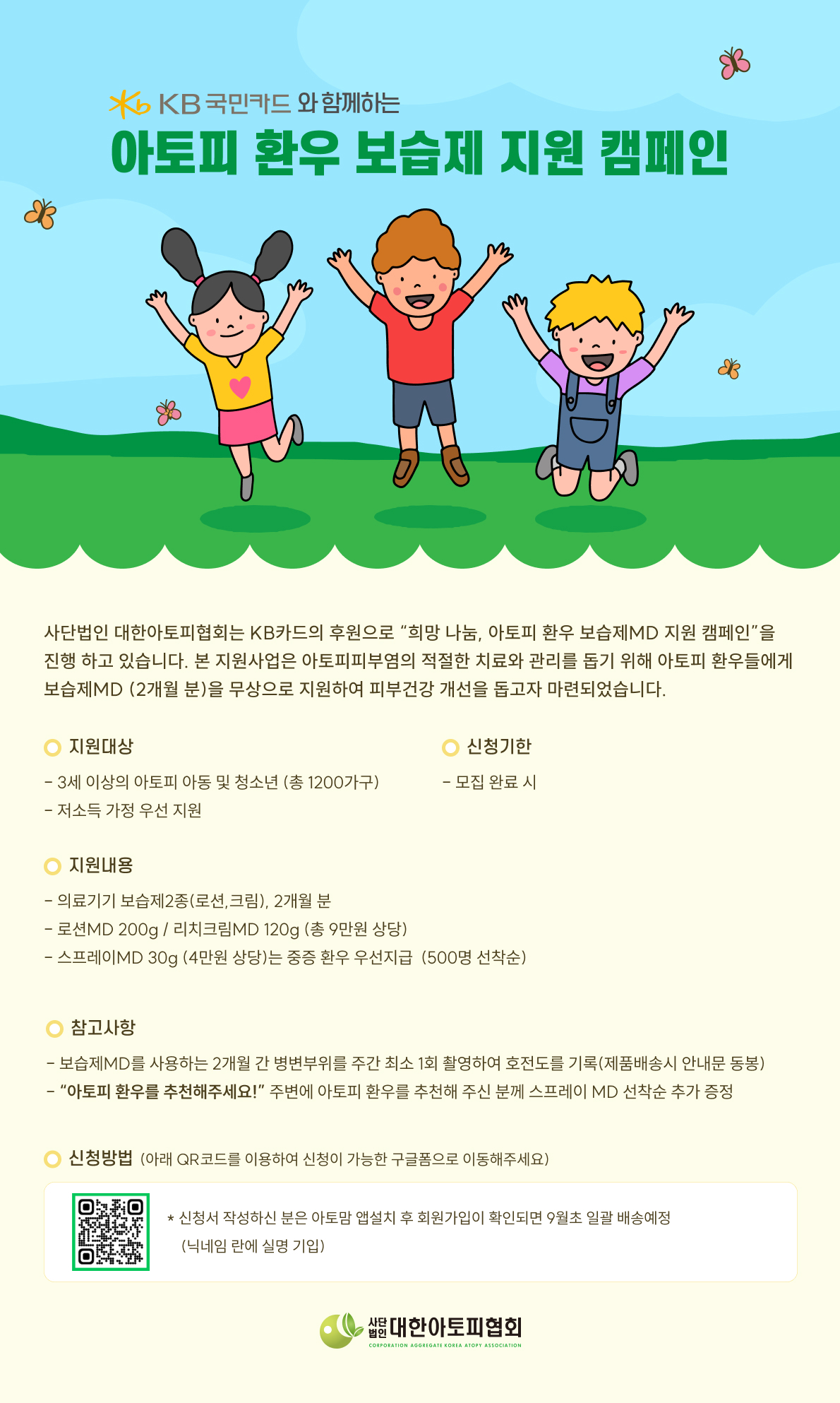 대한아토피협회에서 "희망나눔, 아토피 환우 보습제MD 지원 캠페인"을 진행하고 있습니다.