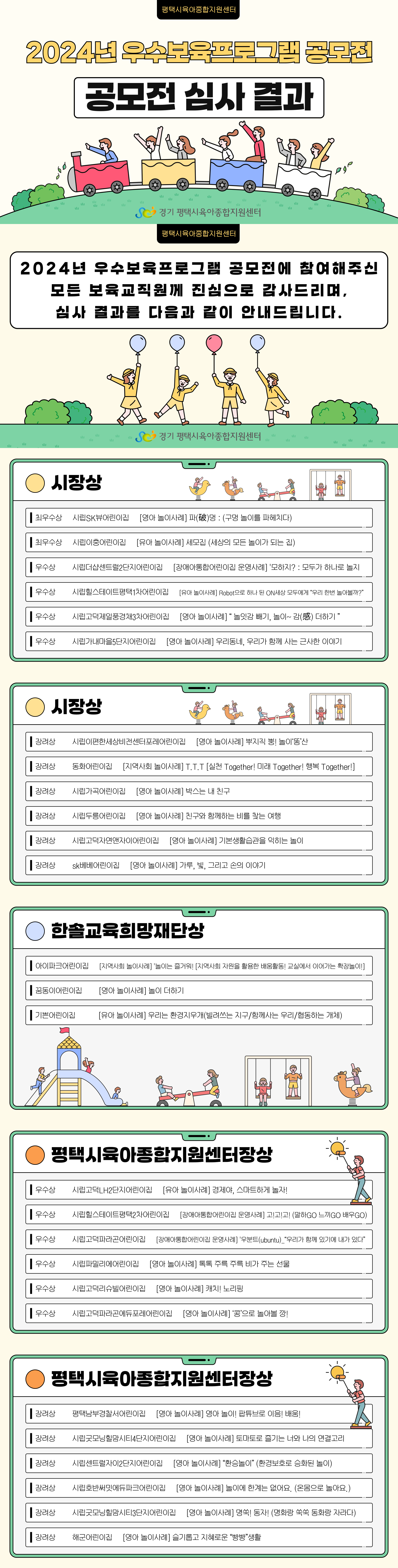 2024년 평택시육아종합지원센터 우수보육프로그램 공모전 결과