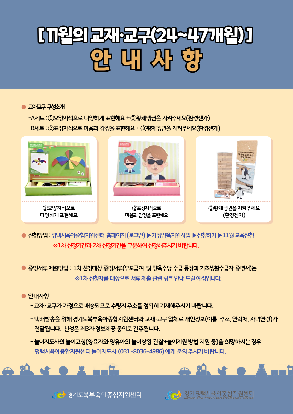 경기도 놀이지도사 『영유아 교재 교구 배달 서비스』 평택시 관내 거주 중인 24~47개월 영유아를 둔 가정을 대상으로