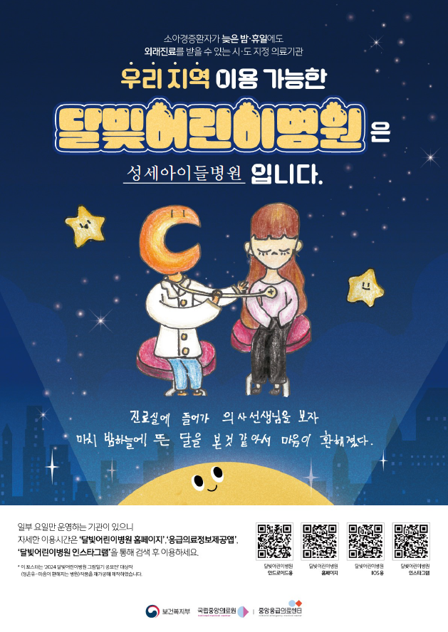 ![]() 소아 야간 휴일 진료센터(달빛어린이병원)의 지역별 홍보를 위해 제작된 포스터를 안내해 드립니다.
