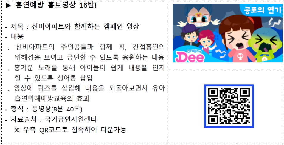 미취학 아동 대상 「흡연 예방 홍보영상」 을 안내드립니다.