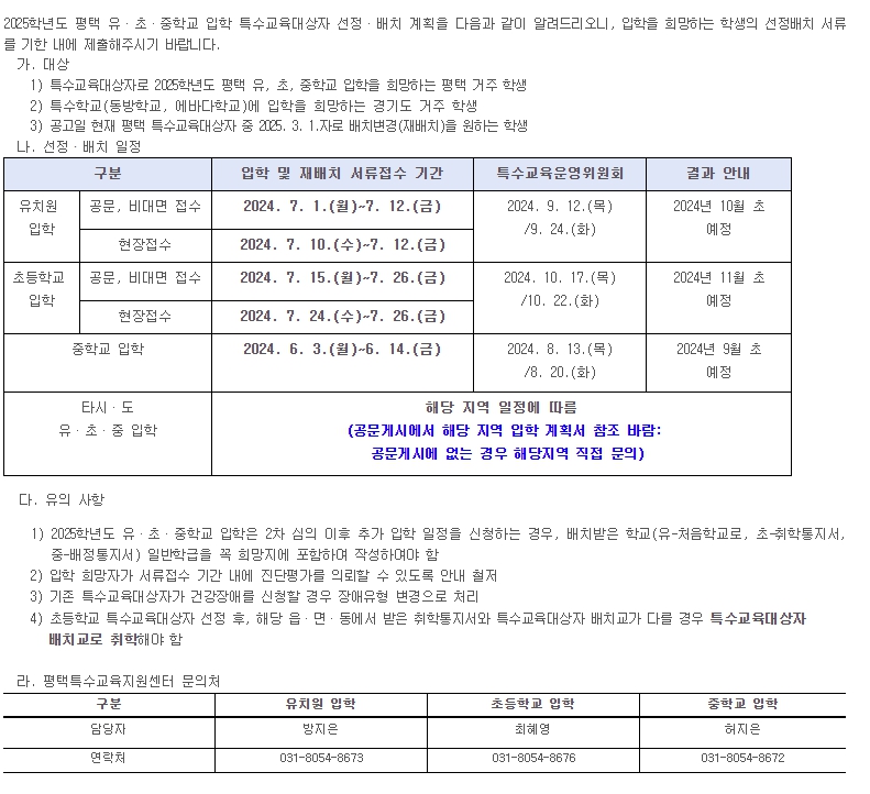 | [경기도평택교육지원-특수교육지원센터]25년도 평택 특수교육대상자 선정배치 계획 안내 | |||||