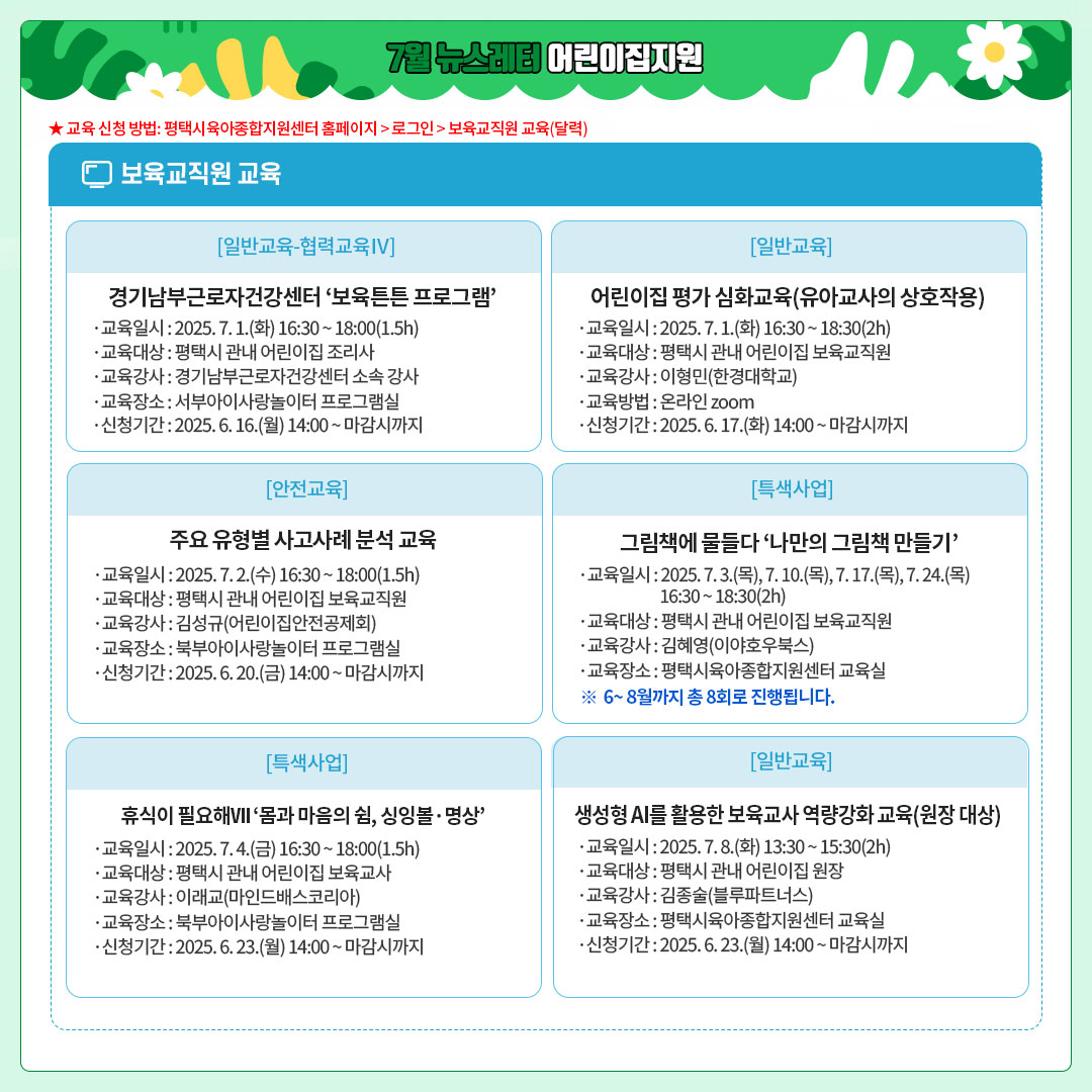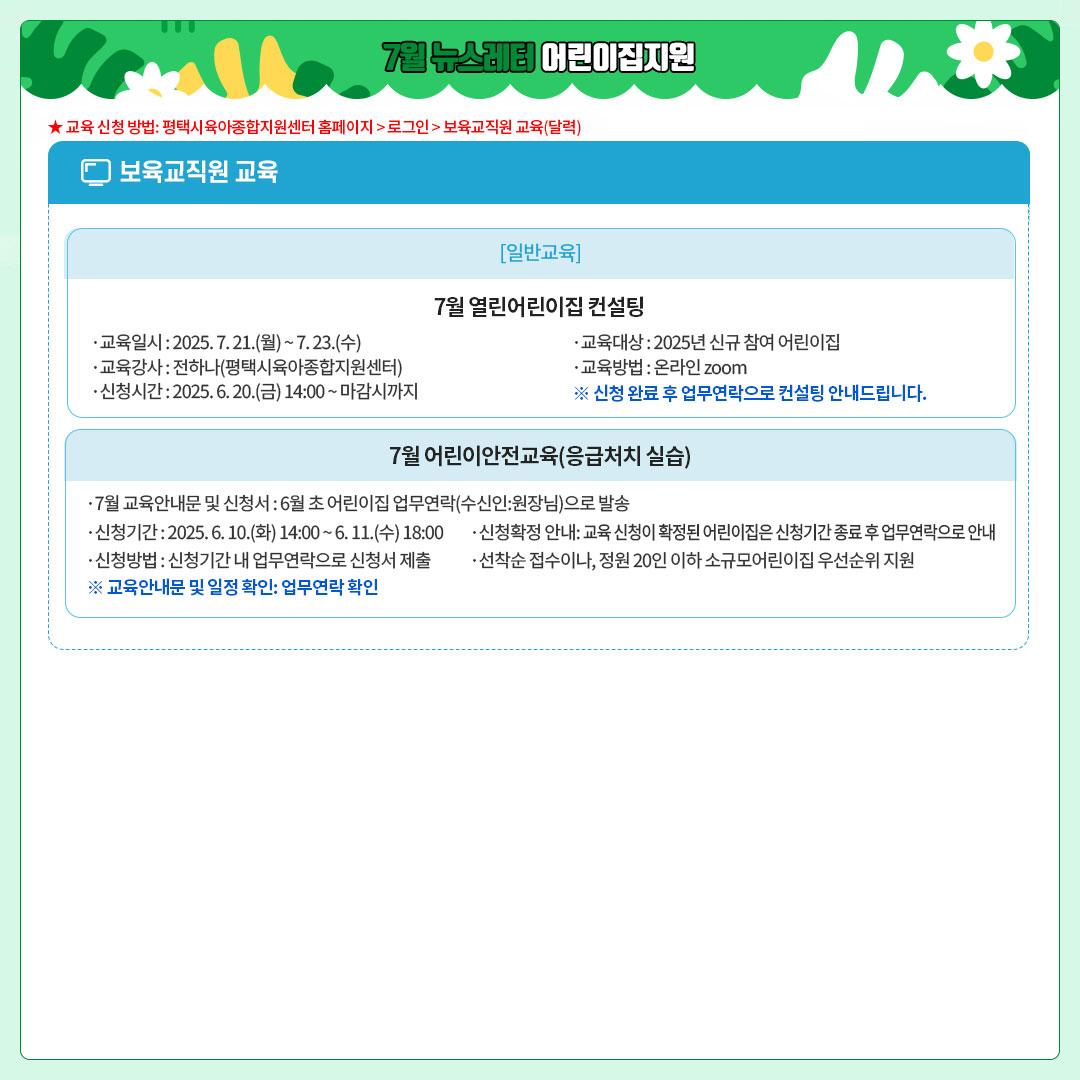 | [어린이집지원] 2025년 7월 뉴스레터 | |||||