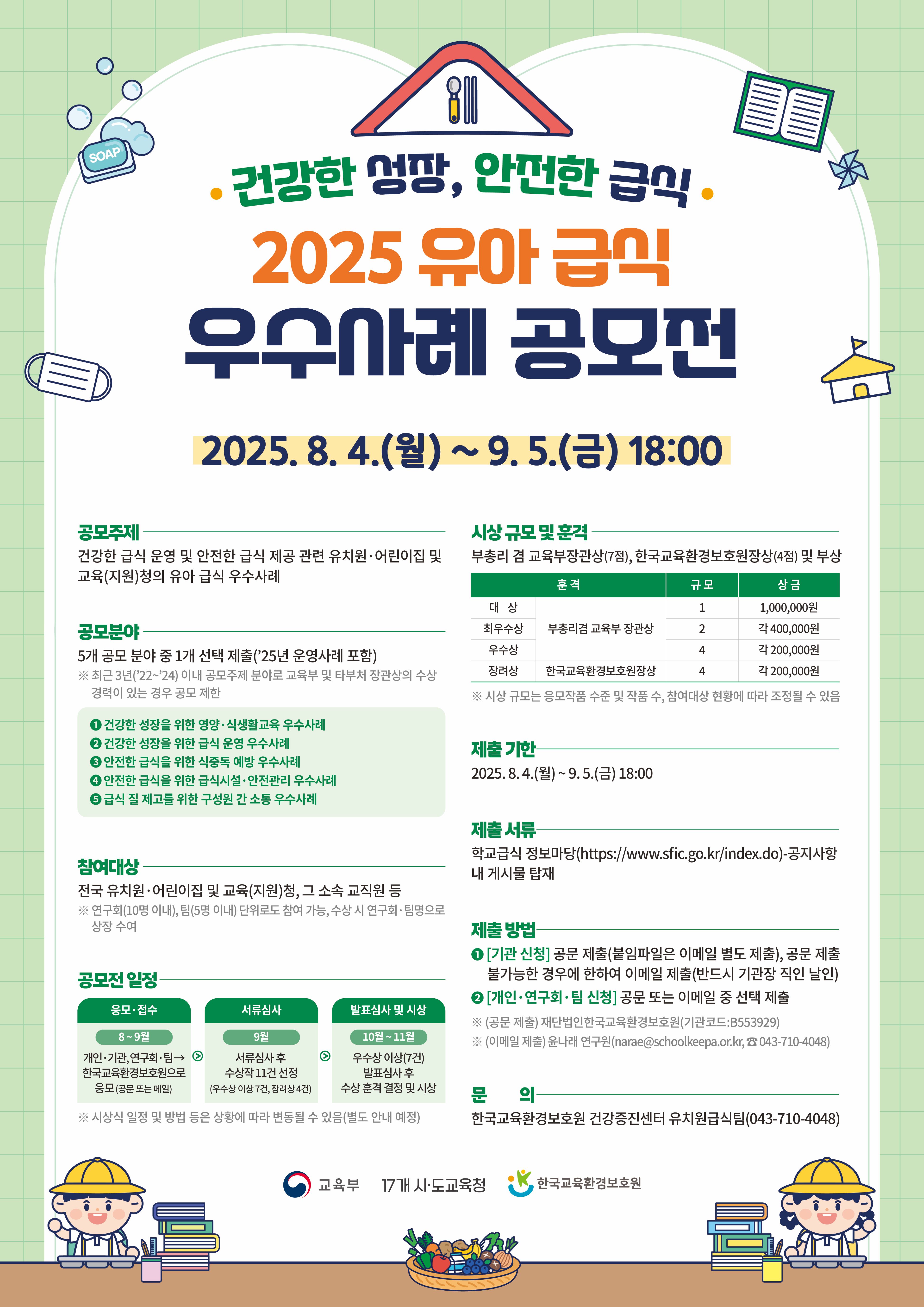 | [교육부] '건강한 성장, 안전한 급식' 2025년 유아 급식 우수사례 공모전 안내 | |||||