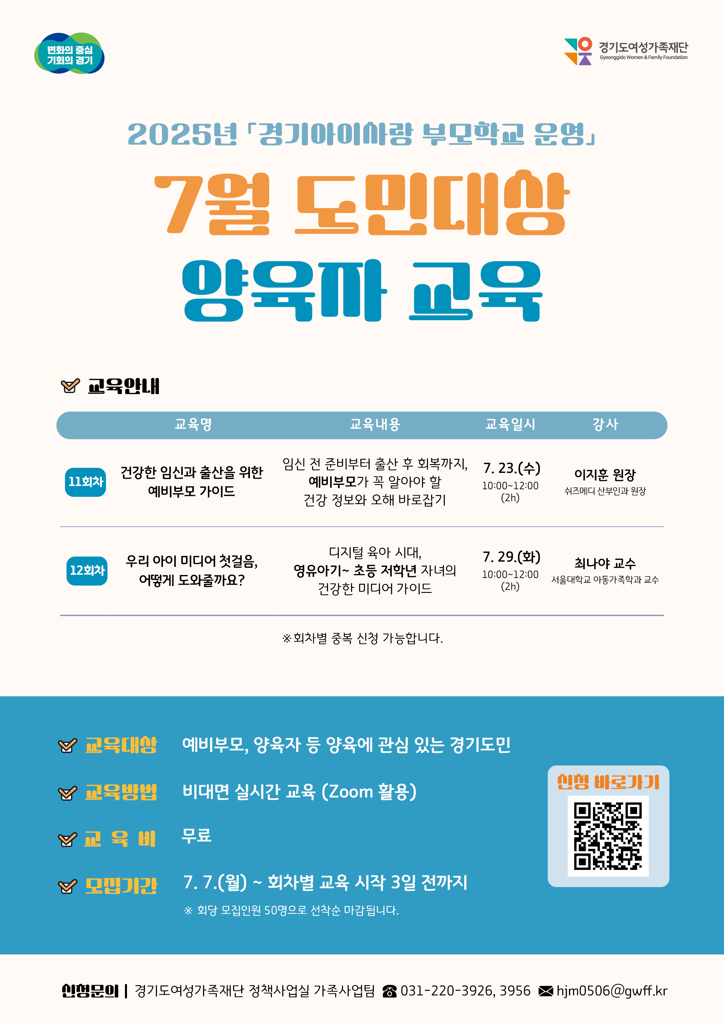 경기도여성가족재단에서 2025년 경기아이사랑부모학교를 운영하오니 많은 관심과 참여부탁드립니다.