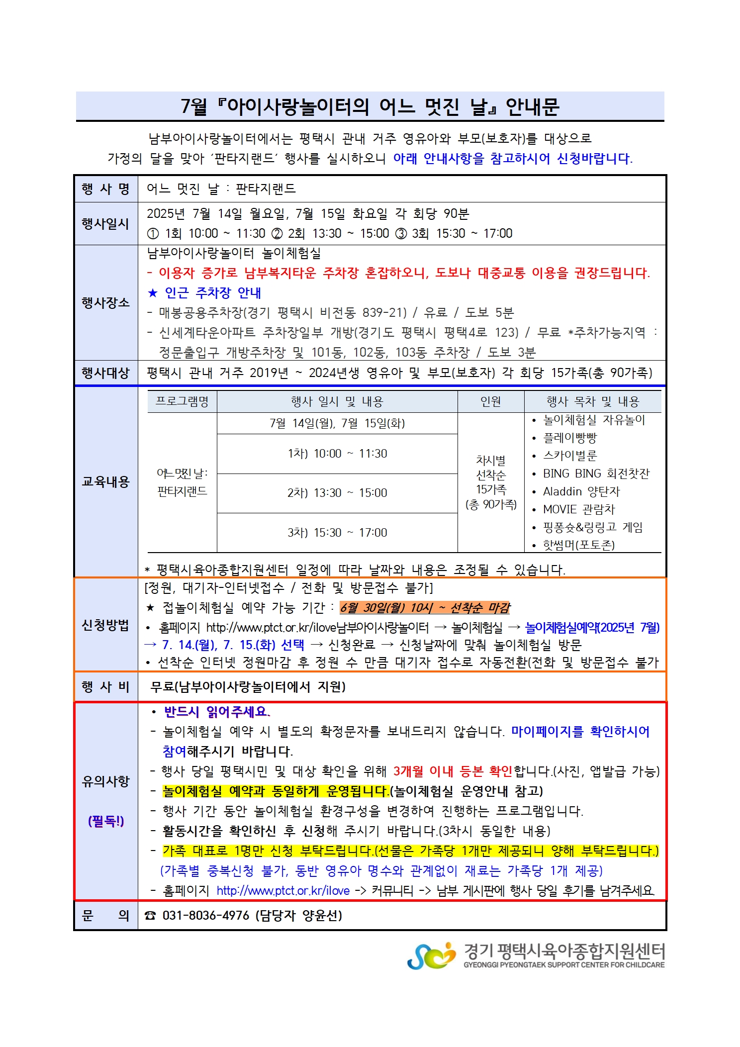 - 7월 놀이체험실 예약하기 : http://www.ptct.or.kr/ilove/m2/sub1_2.asp?datToday=202507&gubun=A&play_area=%EB%82%A8%EB%B6%80#cal