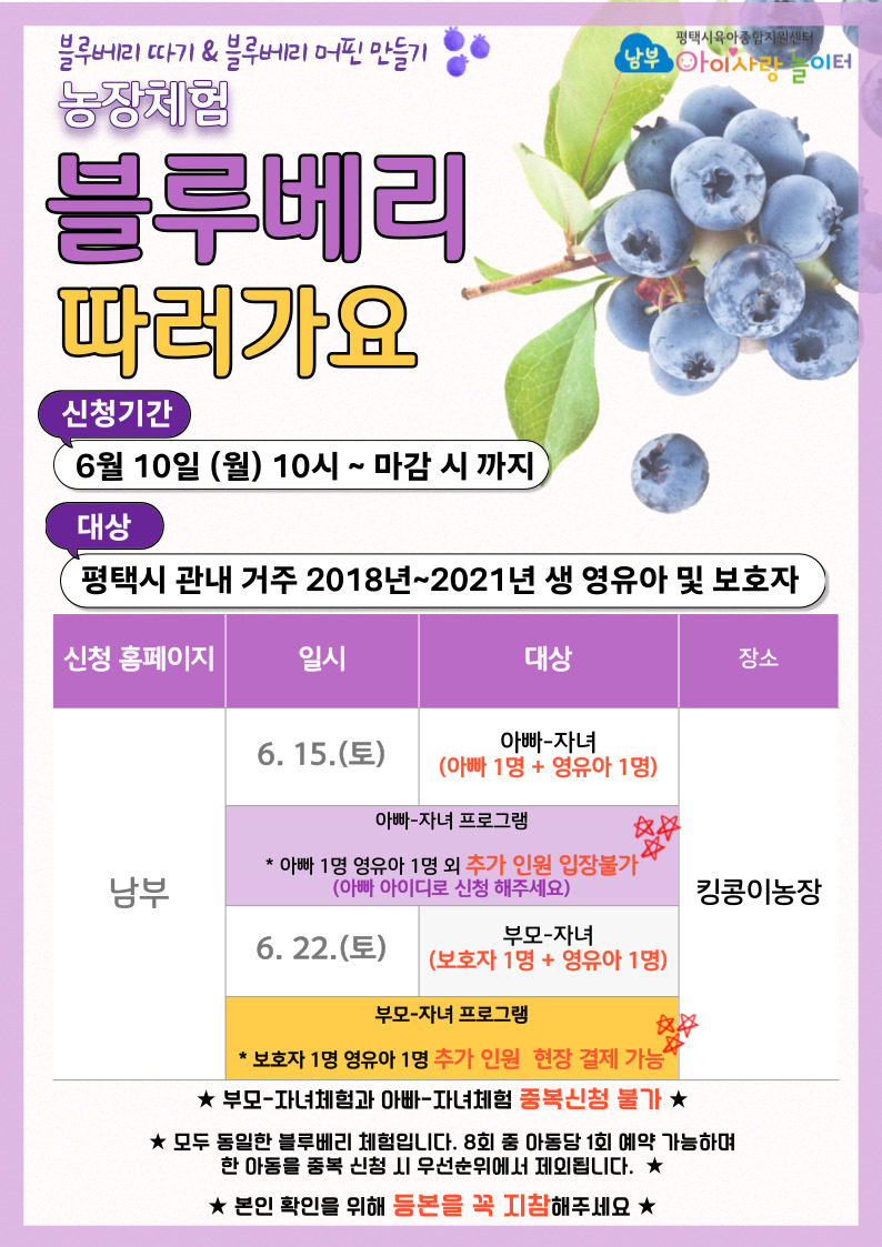 | [남부] 2018년~2021년생 '블루베리 따러 가요!' | |||||