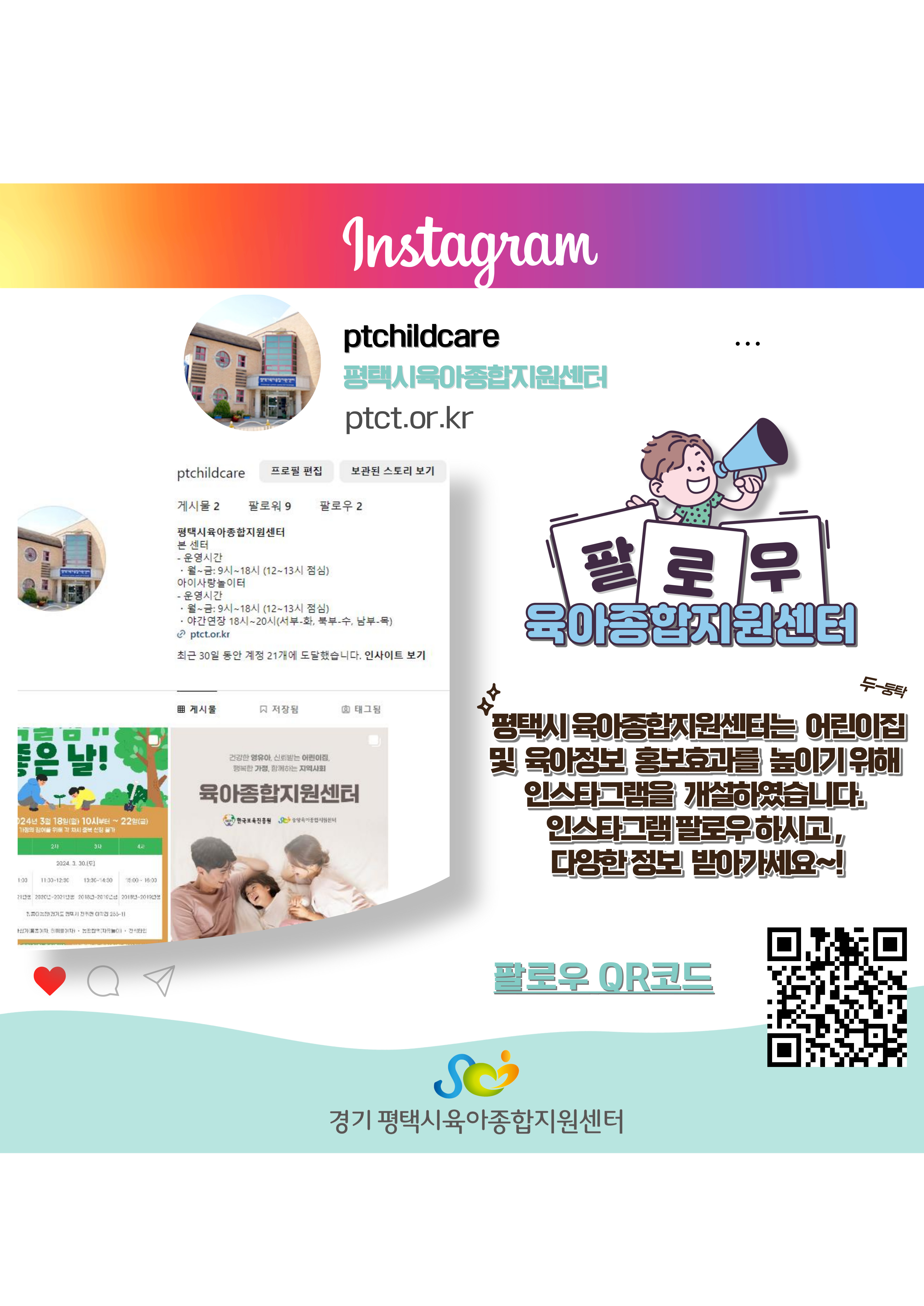 * 평택시육아종합지원센터 인스타그램 '팔로우' 하기 * https://www.instagram.com/ptchildcare/