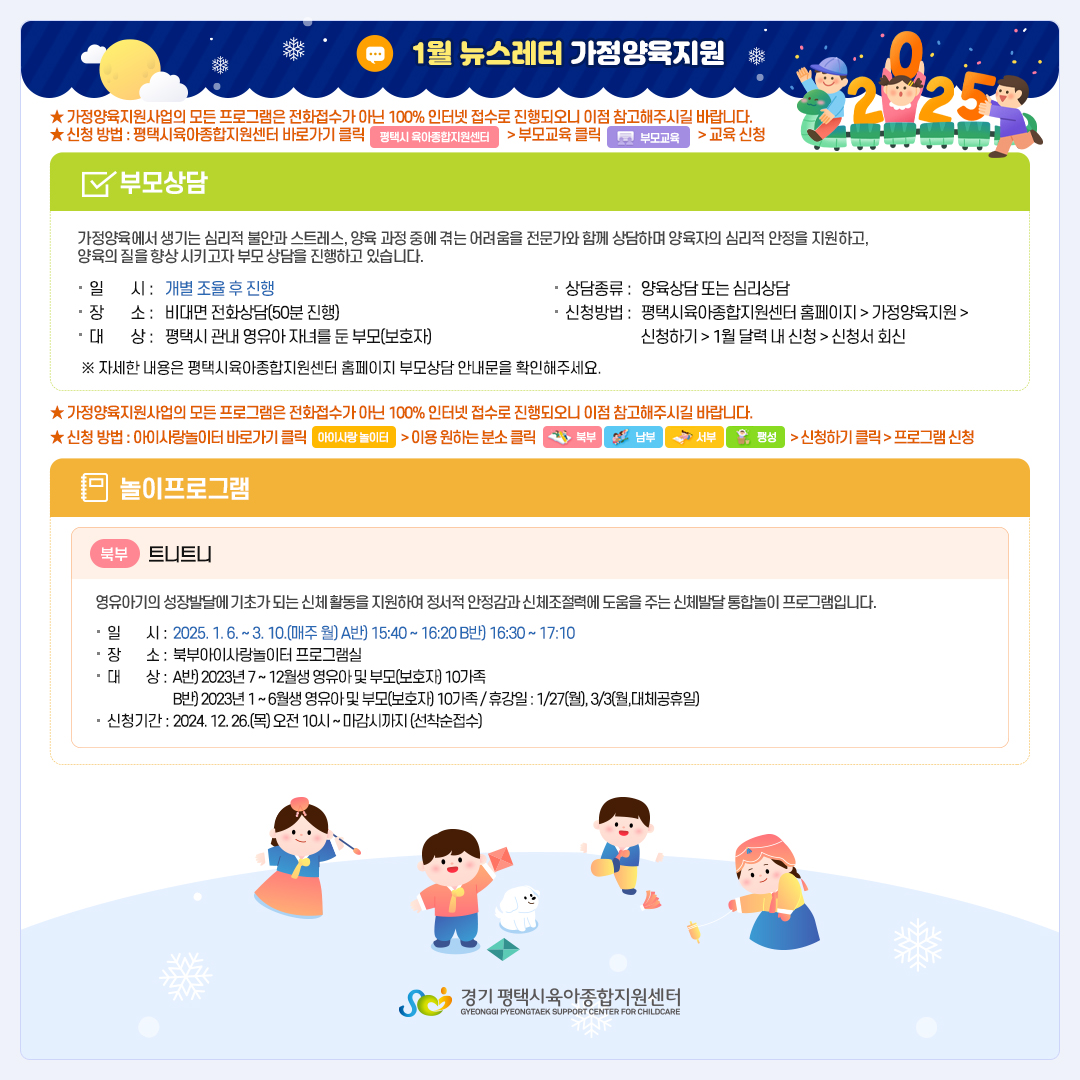 2025년 1월 가정양육지원사업 뉴스레터입니다. 업무에 참고해주시기 바랍니다