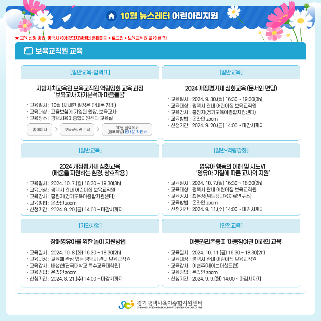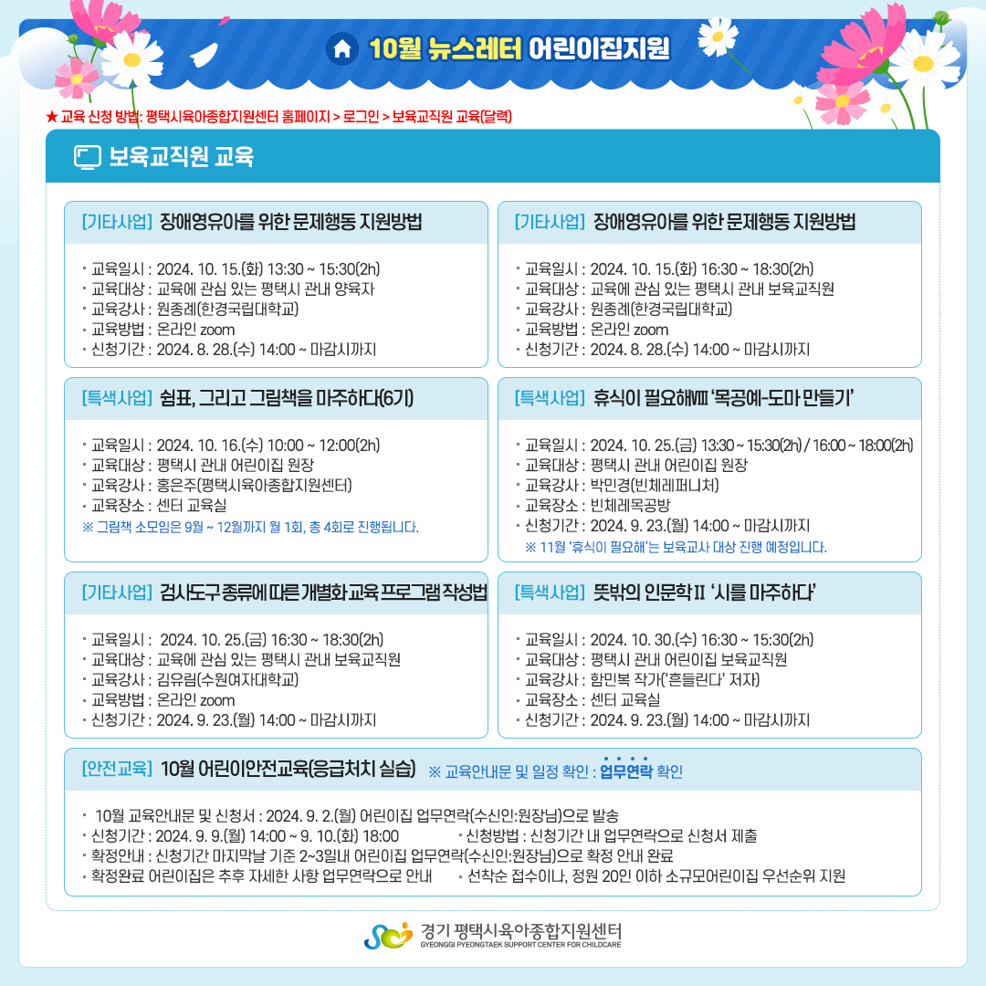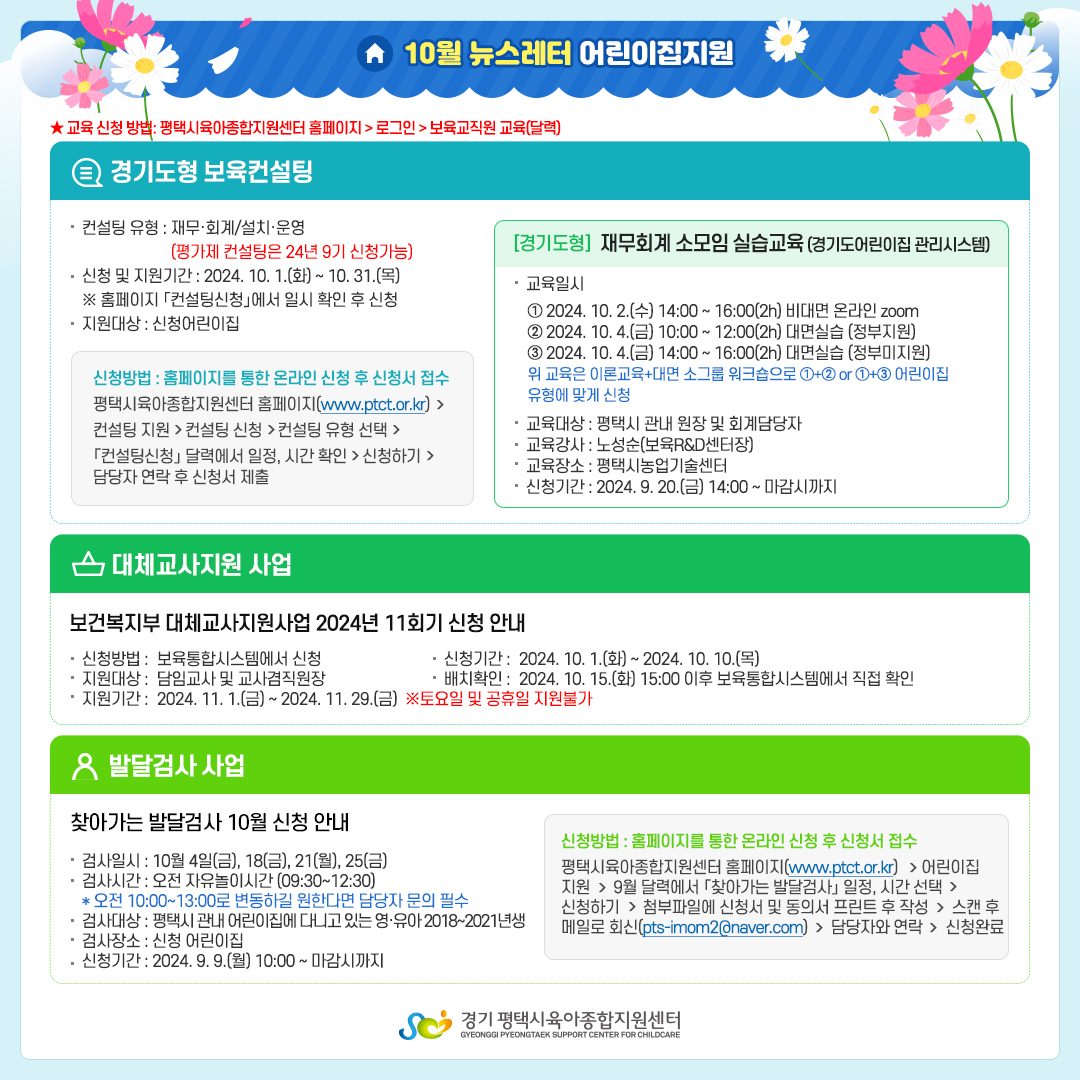 2024년 10월 어린이집지원사업 뉴스레터입니다. 업무에 참고해주시기 바랍니다
