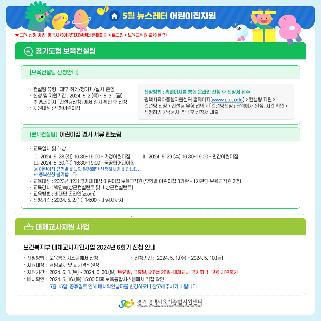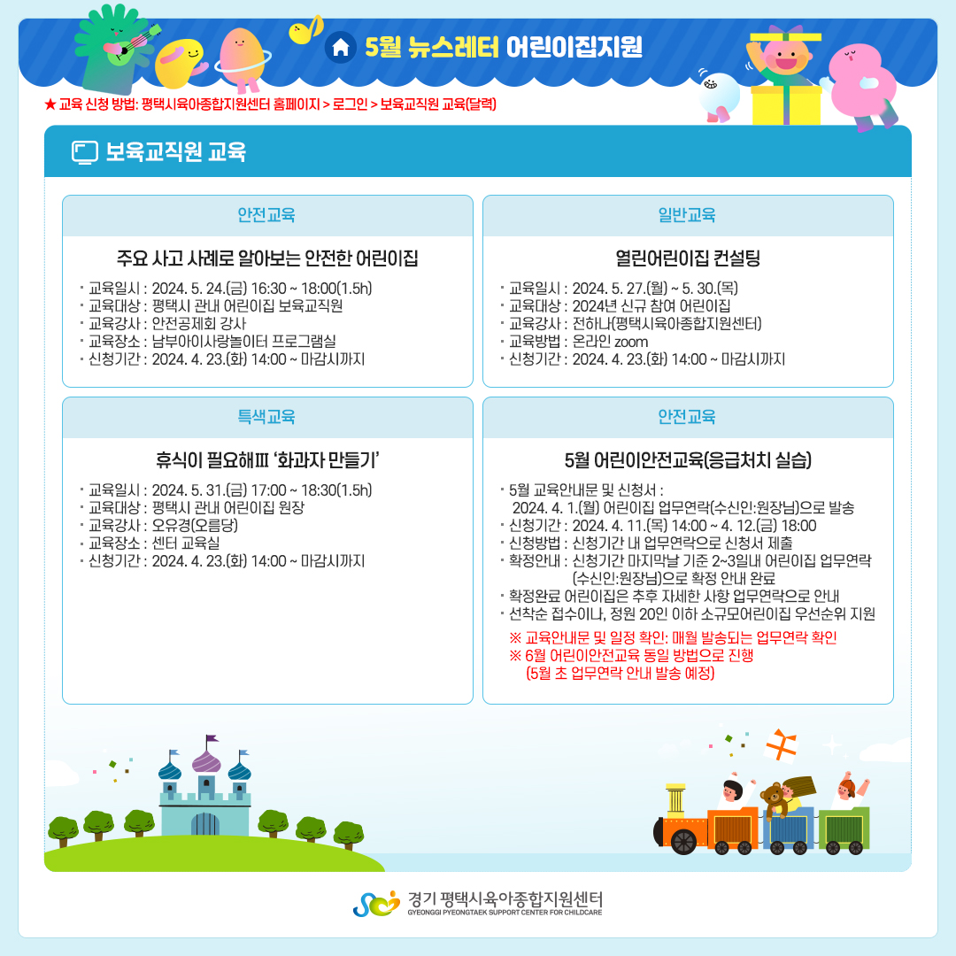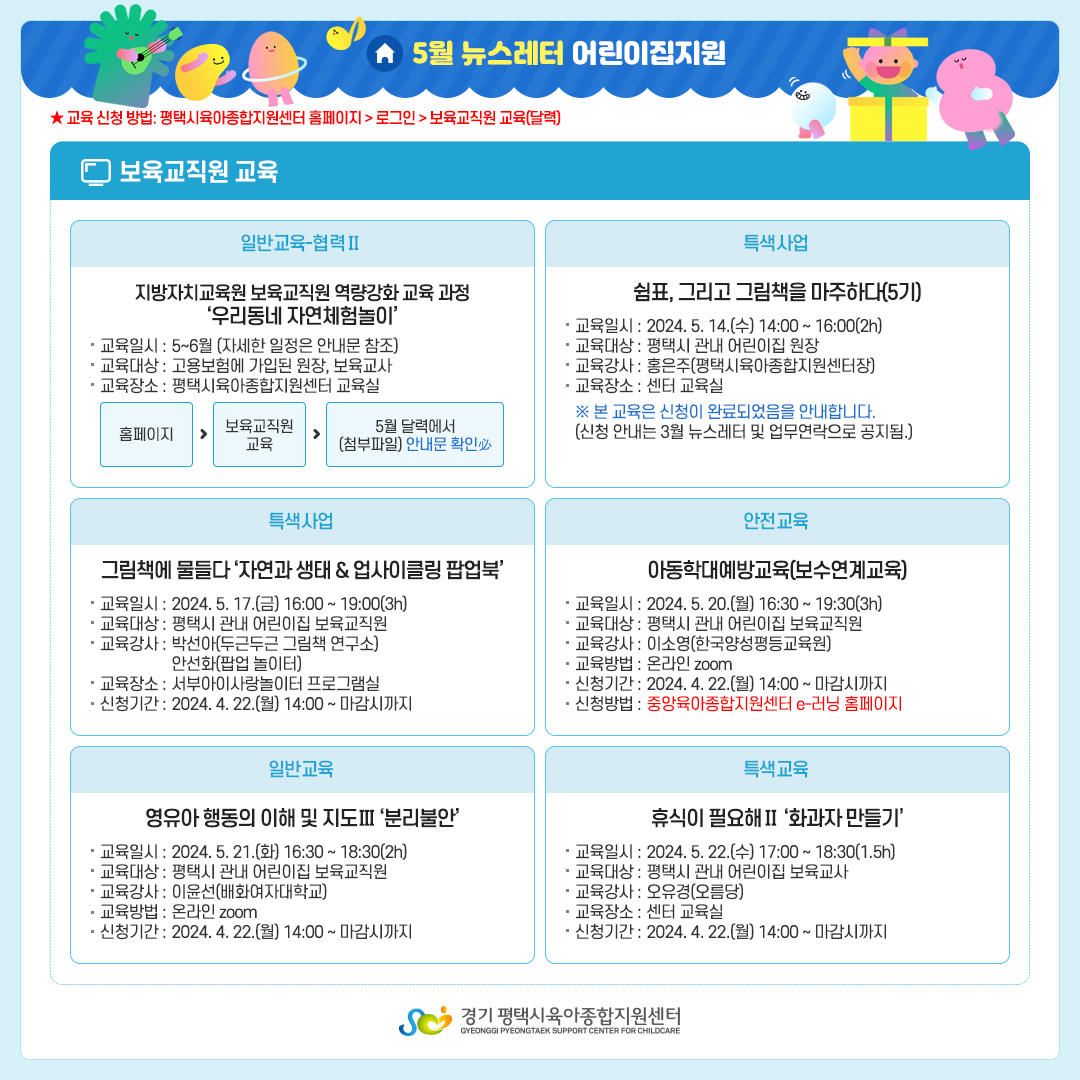 2024년 5월 어린이집지원사업 뉴스레터입니다. 업무에 참고해주시기 바랍니다