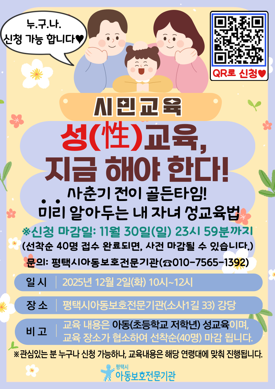 | [평택시아동보호전문기관] '성교육, 지금해야 한다!' 교육안내 | |||||