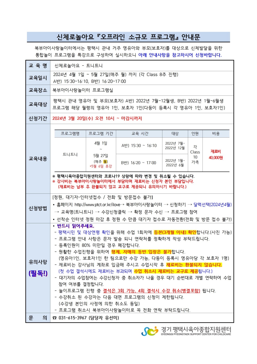 *3. 20.(수)신청*[오/소] 2022년 1월~6월생 트니트니 B반