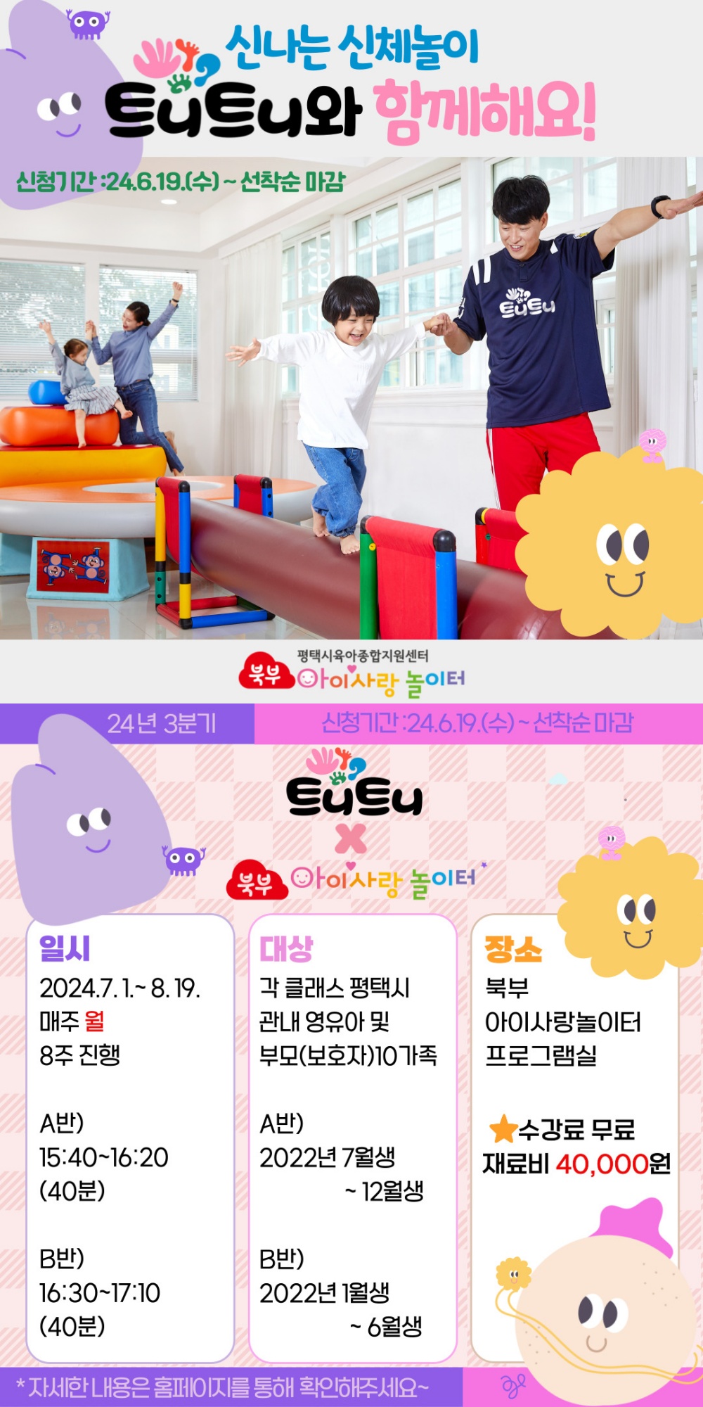 - 서부아이사랑놀이터에서 진행하는 트니트니와 동일 프로그램으로 중복 신청 불가합니다.