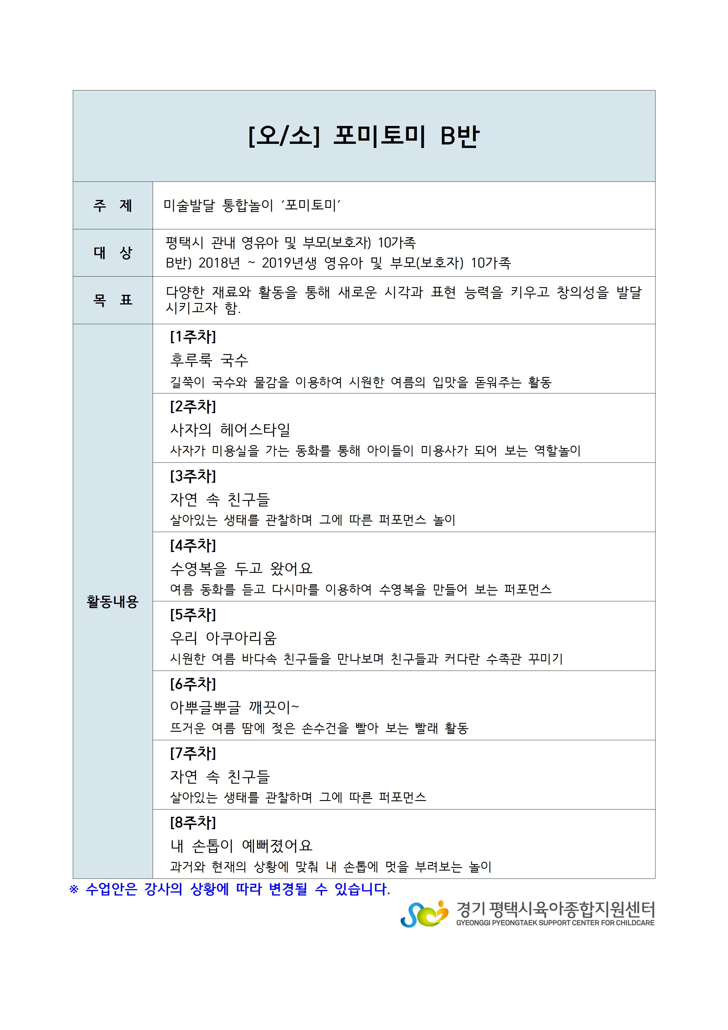 | *6. 19.(수)신청*[오/소] 2018년 ~2019년생 포미토미 B반 | |||