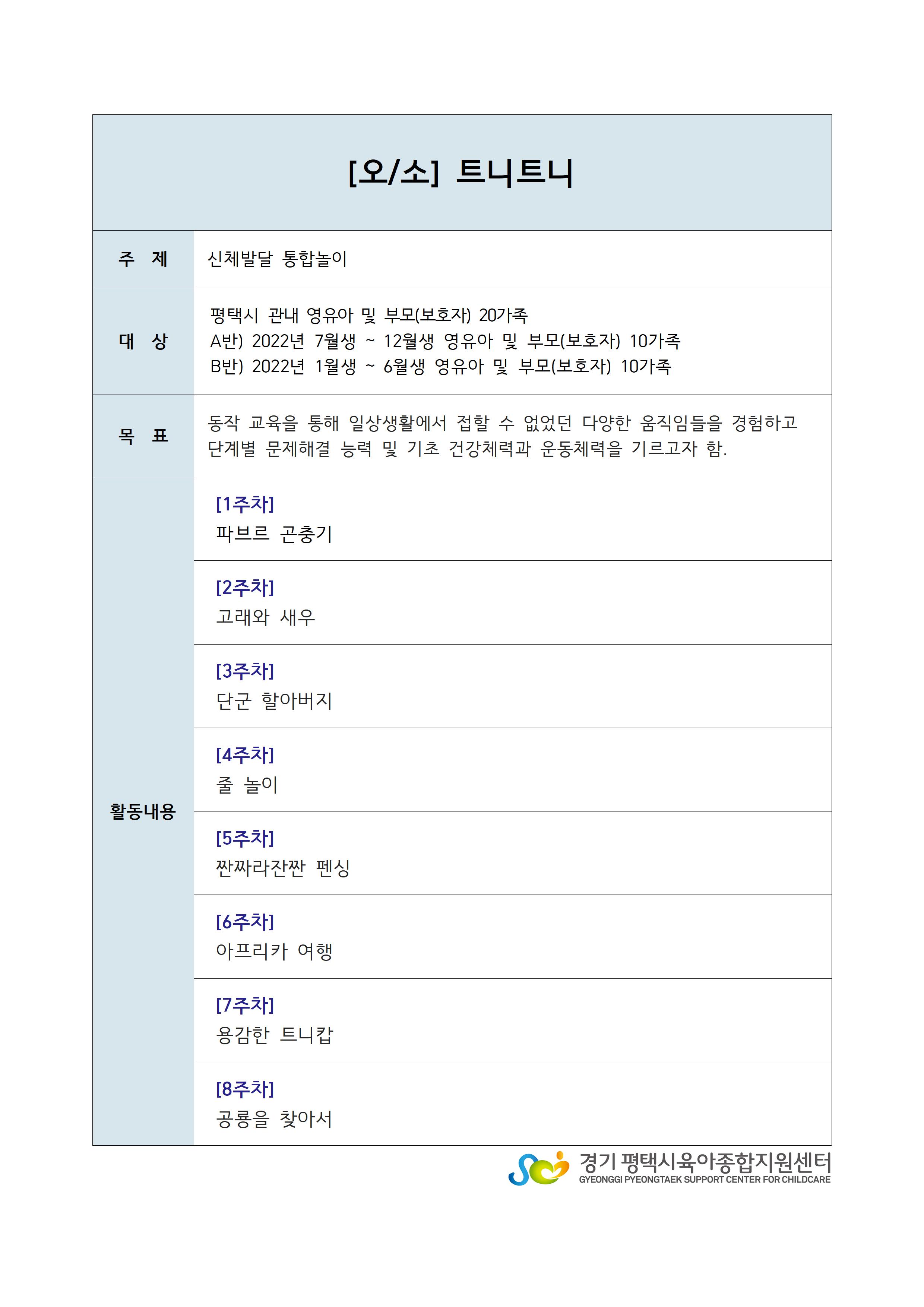 | *9. 25.(수)신청*[오/소] 2022년 1월~6월생 트니트니 B반 | |||