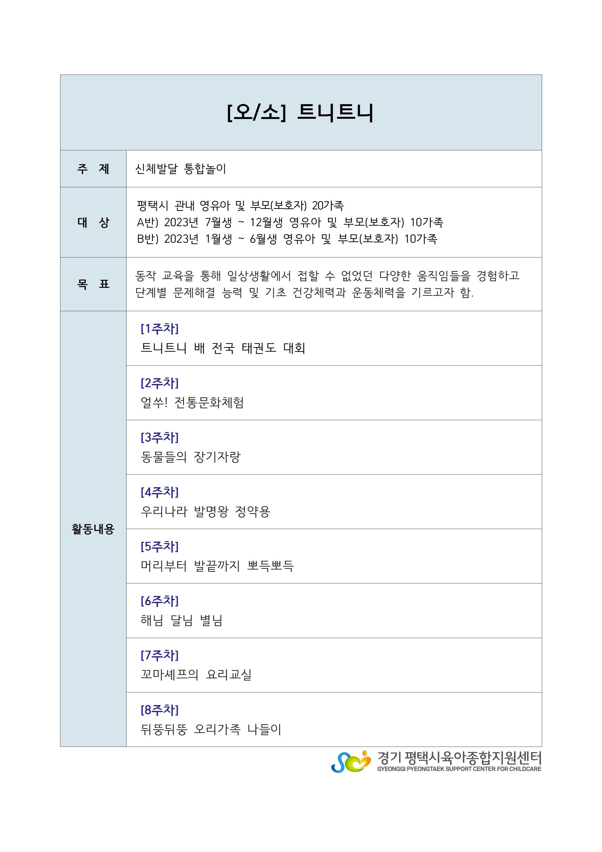 | *12. 26.(목)신청*[오/소] 2023년 1월~6월생 트니트니 B반 | |||