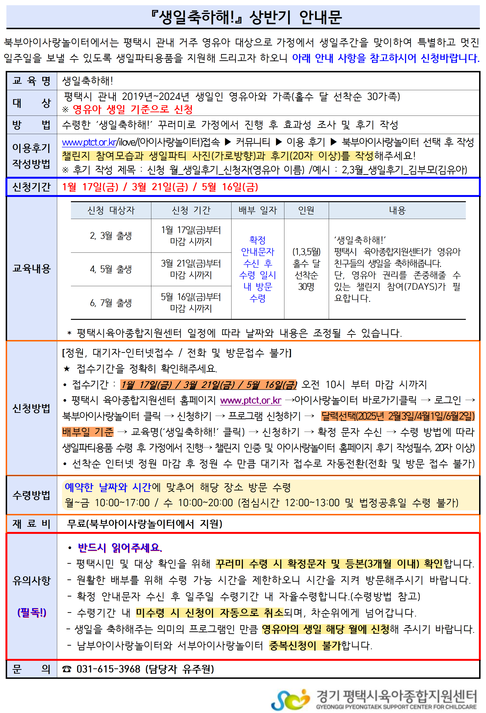 2025년 '생일 축하해' "일주일로 시작하는 영유아권리존중챌린지!" 평택시육아종합지원센터에서 생일달을 맞이한 아이가 멋지고 특별한 한주를 보낼 수 있도록 지원해드립니다!