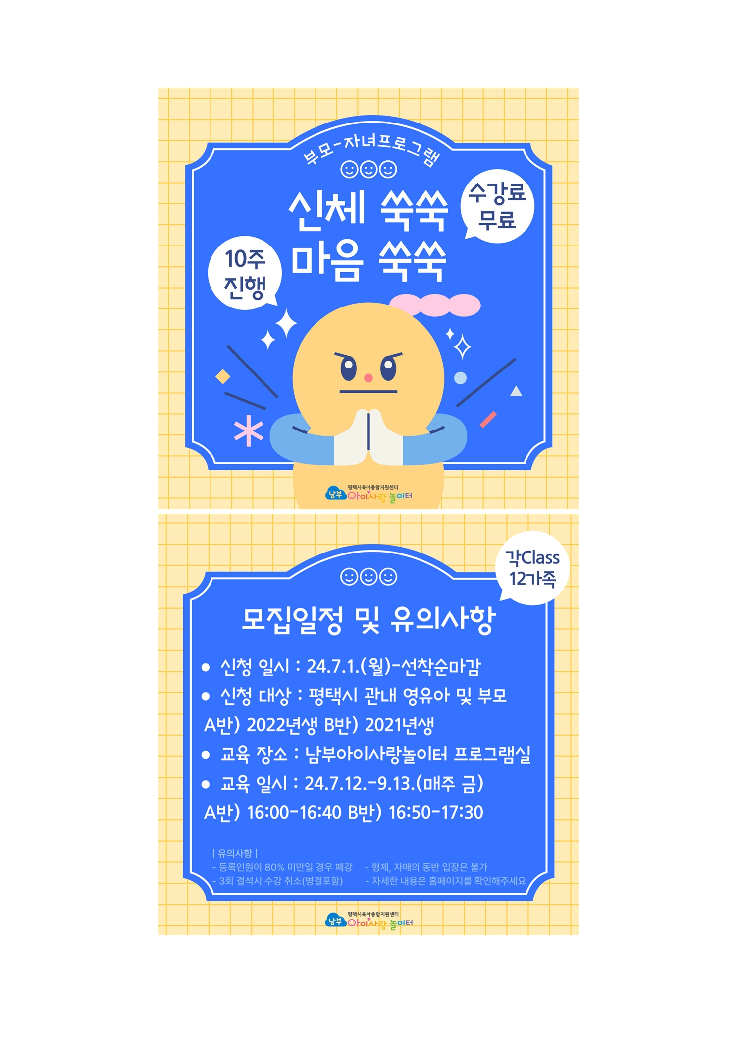 | *7. 1.(월)신청*[특강] 2022년생 신체 쑥쑥 마음 쑥쑥 A반 | |||